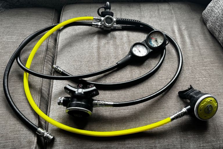 Selling my Scubapro R5 TEC complete with 1st , 2nd stage along with Drysuit hose and depth and contents gauge.