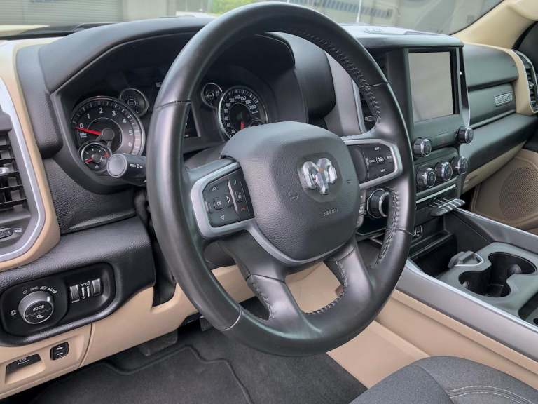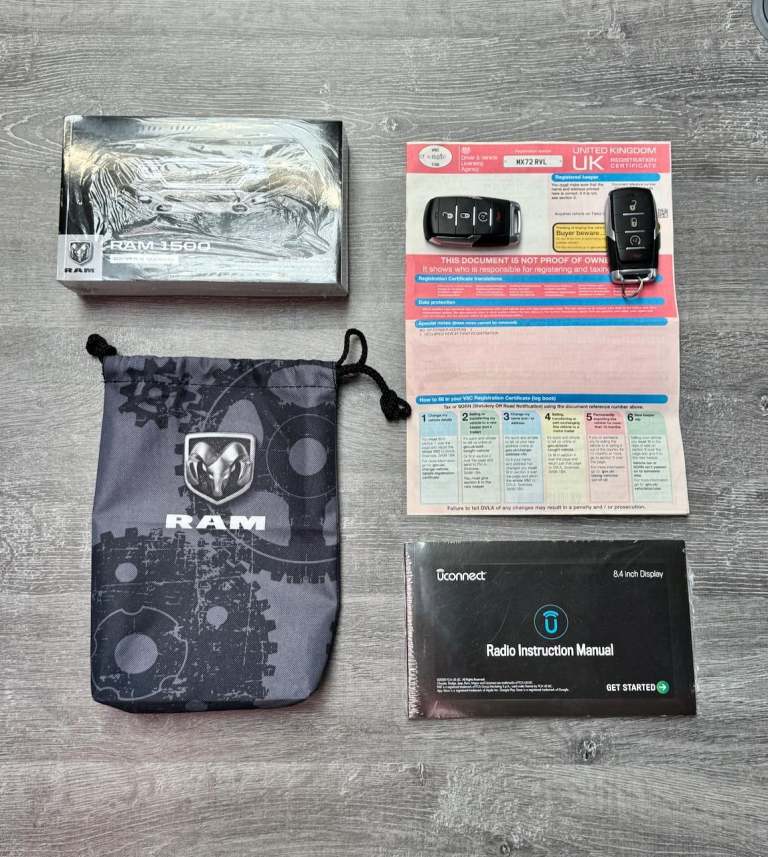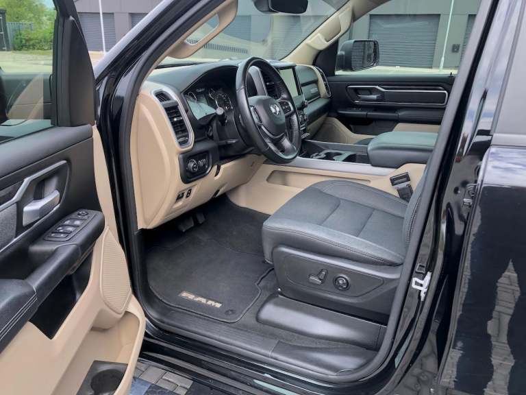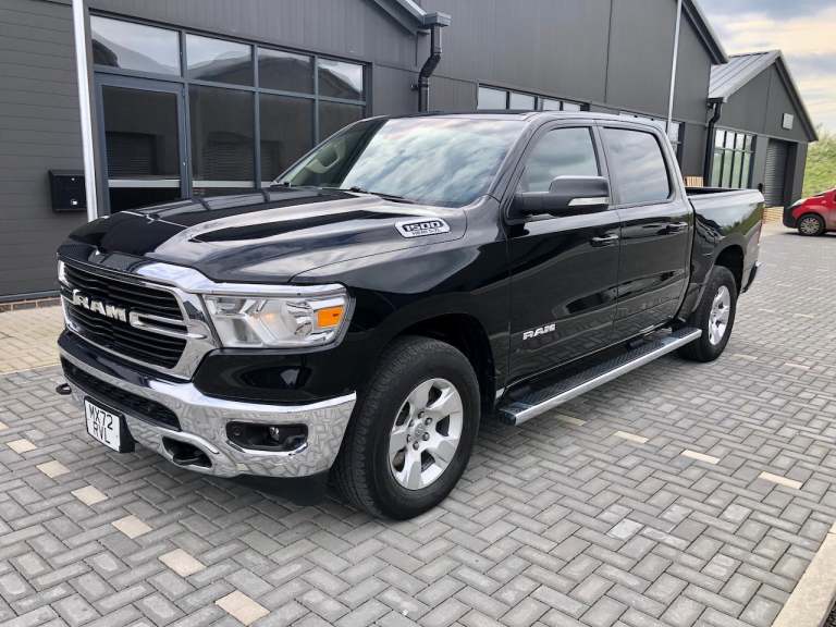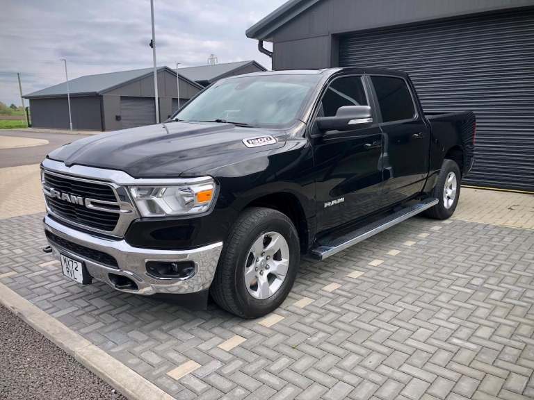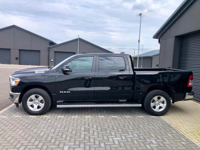 Great spec 1500 5.7 mds HEMI V8 Bighorn Edition in Diamond Black Crystal with full exterior brightwork package, Push button start, Wheel to wheel side steps, Remote start, Shift on the fly 4x4 system with tow/haul mode, 8.4" Full colour Uconnect infotainment with CarPlay/Mirroring & Dual A/C USB ports, Full colour backup camera, Park assist front & rear, Power pedals, Power driver seat, Ram bin storage system, Privacy glass, Leather stitched MFSW, Cruise control, Ice cold AC & Power sliding bed window, Class 4 hitch receiver with UK tow electrics.