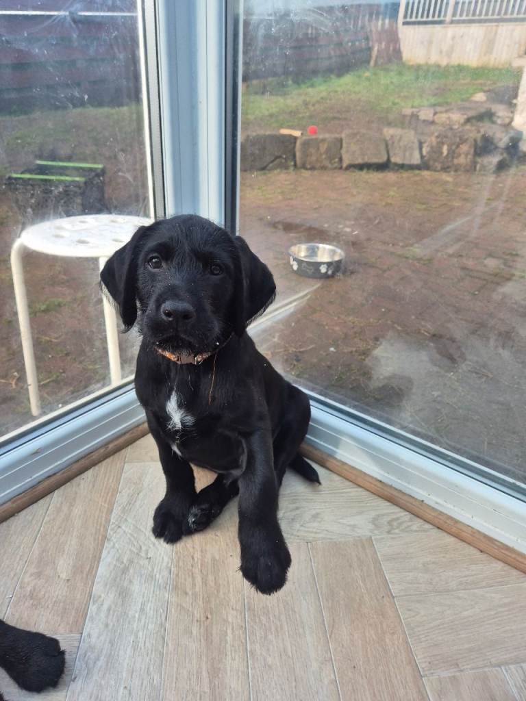 Only 4 males are left . All pups black coloured some some have white markings on their chests . These puppies shall be easy to train and will have great natures like their parents when older. All the puppies are showing great confidence and are full of fun and eager to play .
