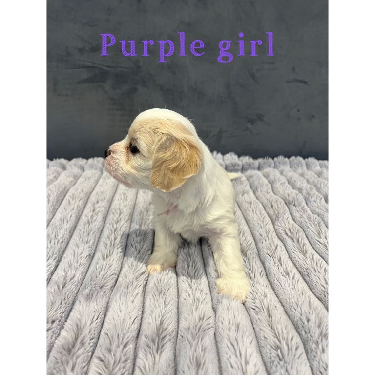 About the dad - Finbar is our energetic and sweet Cavachon. He’s very energetic, playful and affectionate. He is great with kids and has been a great dad playing with his pups.