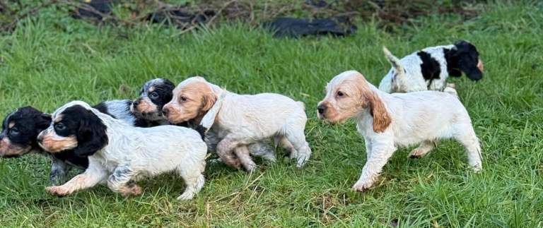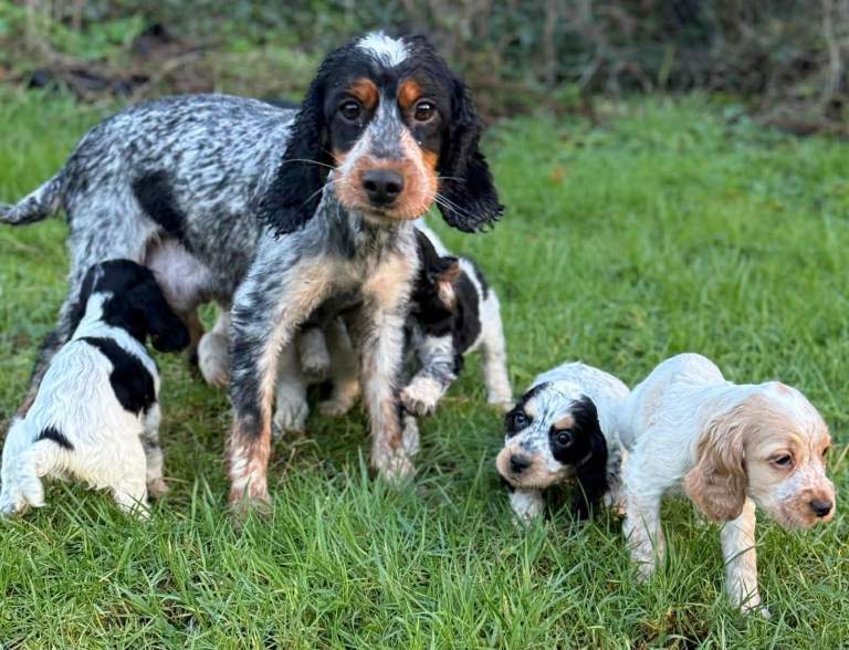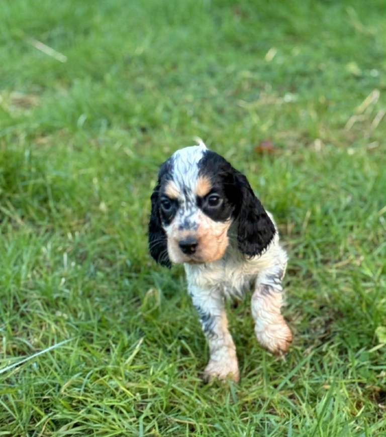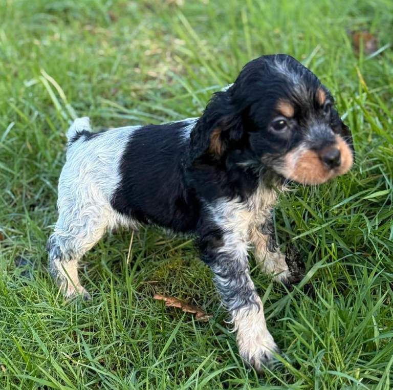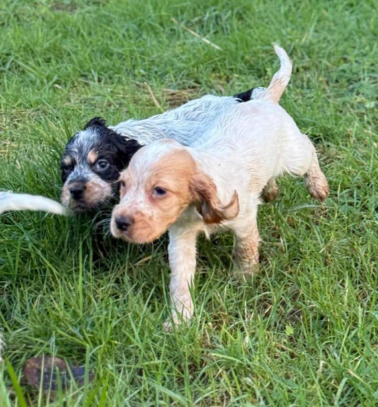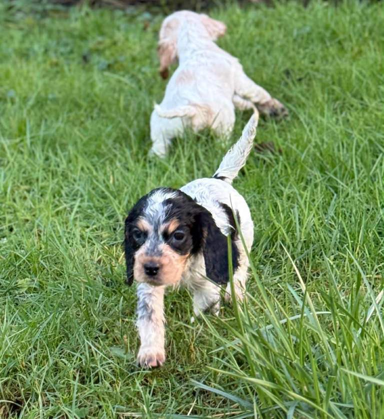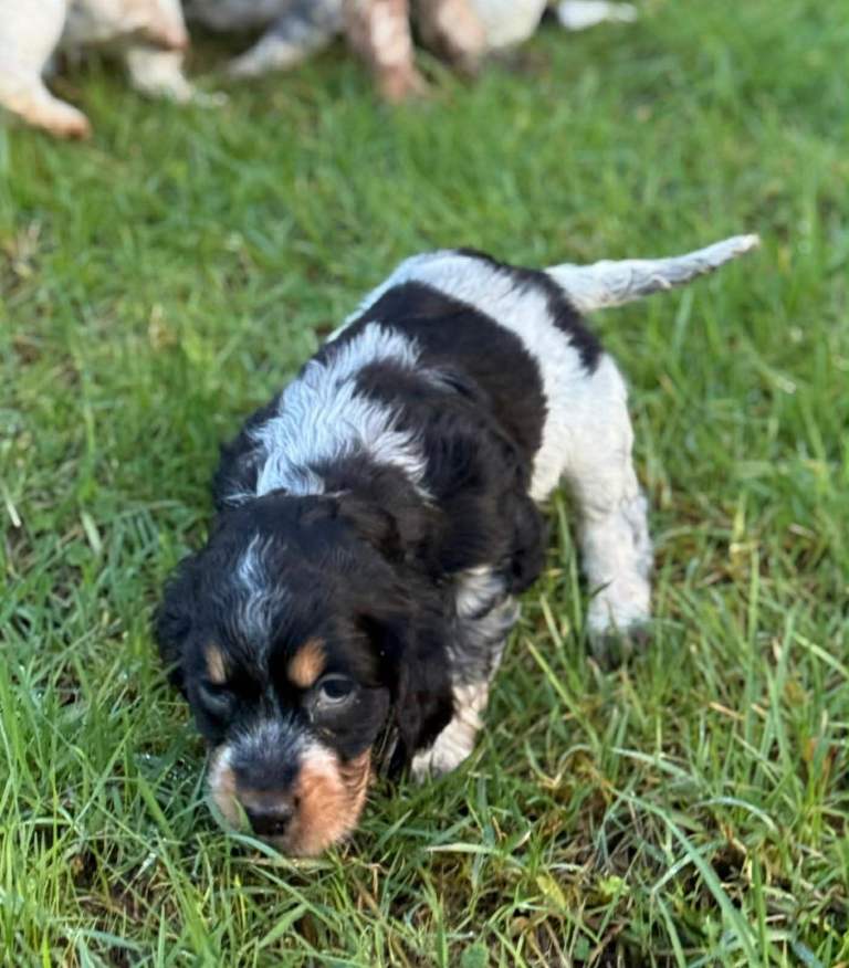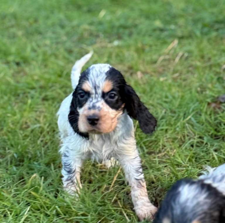 Raised in a loving environment with plenty of care and attention, these puppies are confident, curious, and full of life. As you can see, they have stunning markings and those irresistible soulful eyes that Cocker Spaniels are famous for.