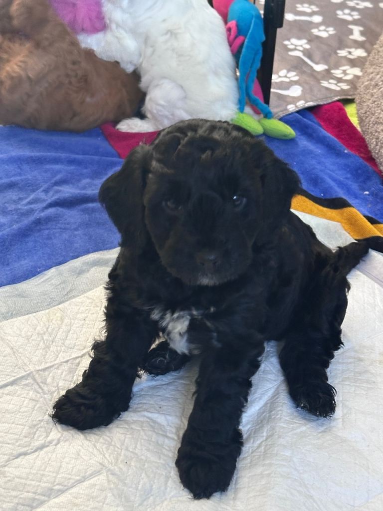 Weโre proud to offer our lovely litter of F2 Cockapoo puppies. We currently have 2 beautiful boys available. They are very outgoing, confident, and full of personality โ already showing lovely temperaments.