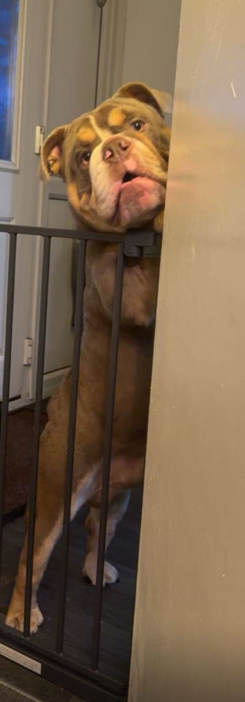 Bruiser is a full English bulldog