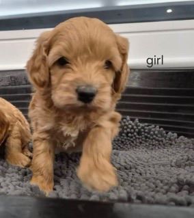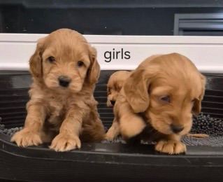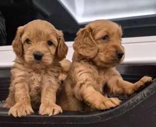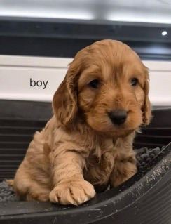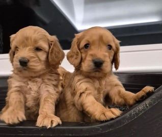 Beautiful cockapoo pups ready for their new homes. They are just over 8 weeks old, wormed every 2 weeks from birth and they have their vet book showing the details of their first vaccine.