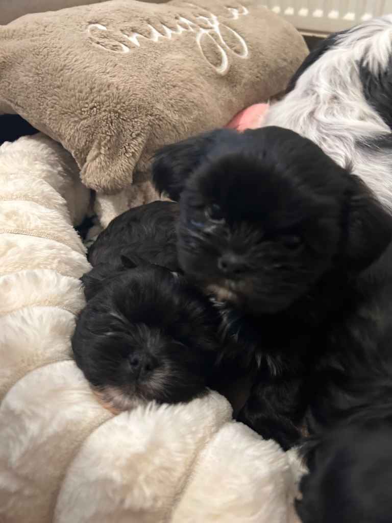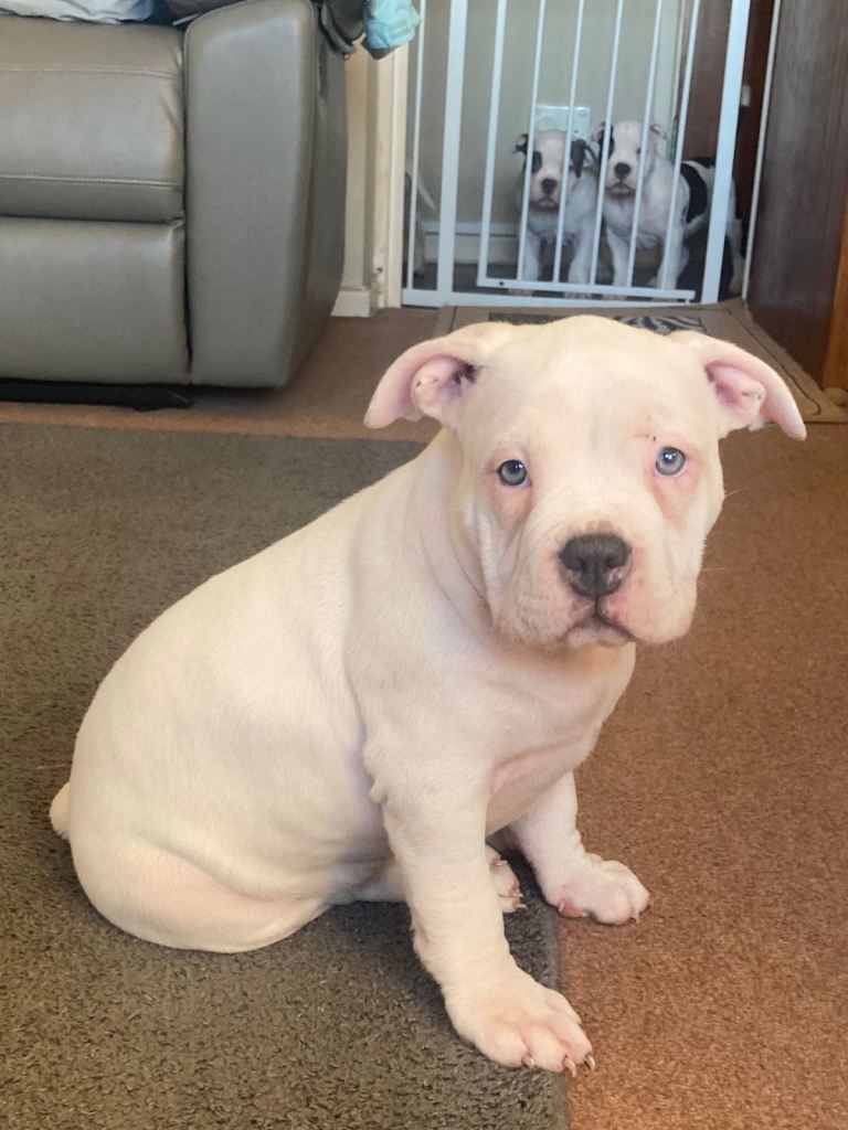 Excellent temperaments.All our pups are born and raised in the house and are handled from birth and are used to all household noises and other dogs.