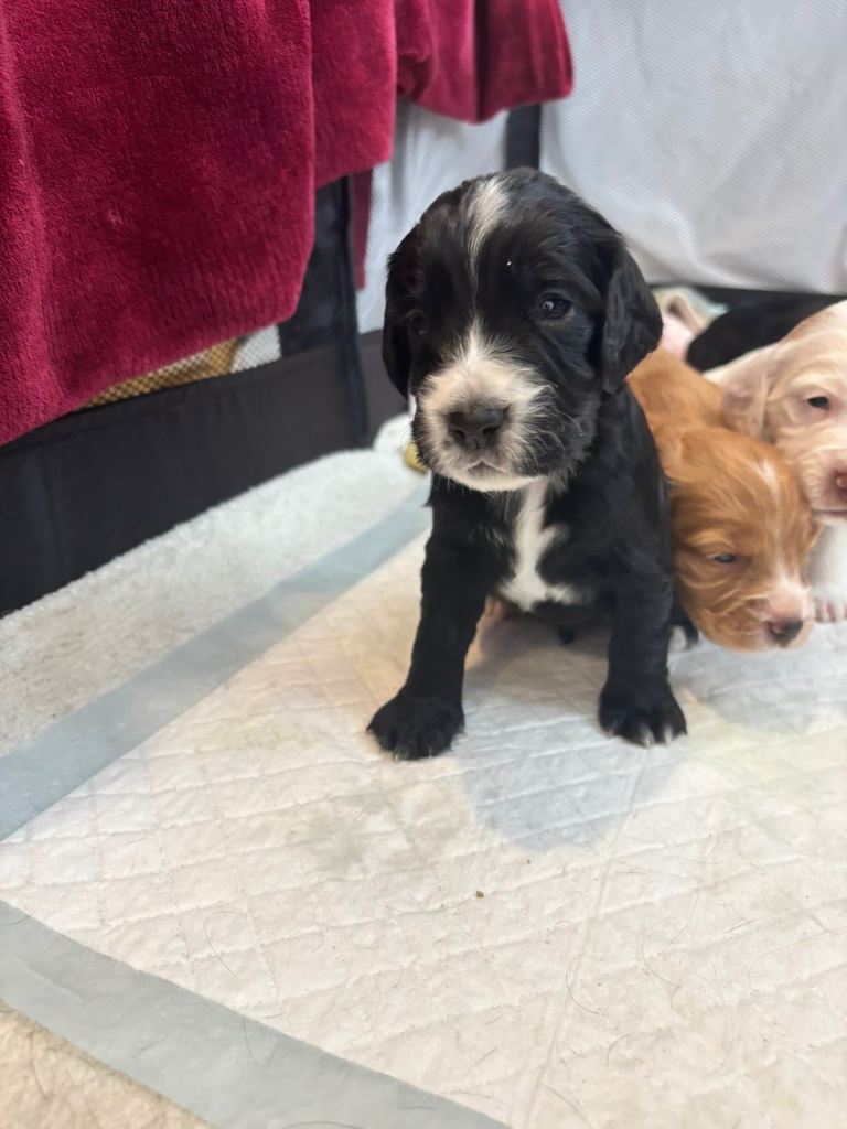 ‼️3 boys left ‼️We have a beautiful litter of cocker spaniel puppies 🐶. Raised in our family home with lots of love and attention. Born on the 19th January 2026