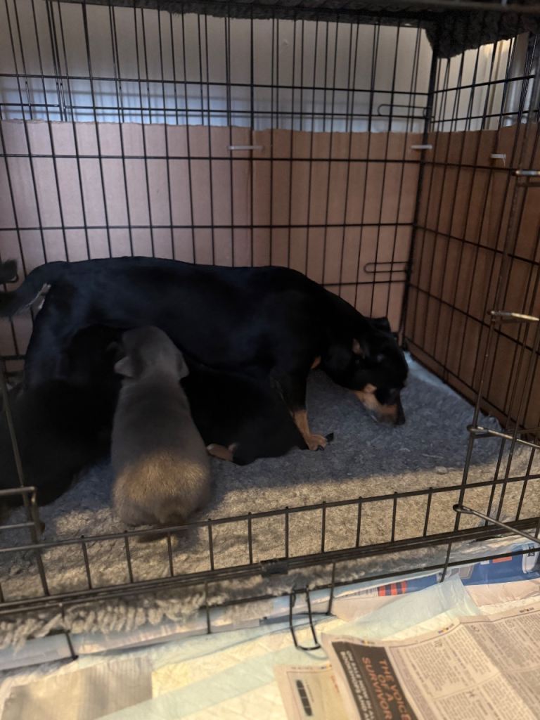 Mum is a lovely black and tan, and Dad is chocolate and tan — a grandson of the world-famous Louis of Much Wenlock stud, bringing outstanding breeding and temperament.