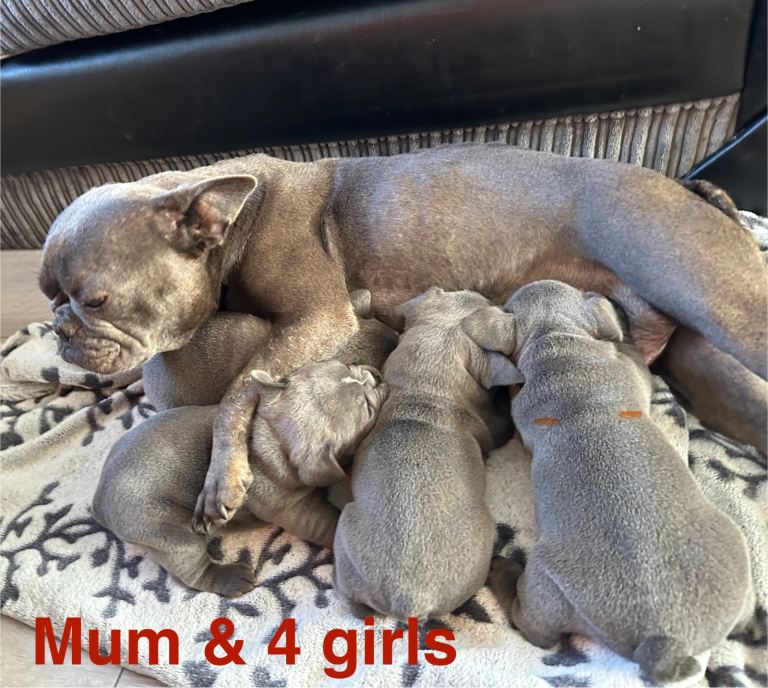 Amazing Solid Blue French Bulldog puppies are now 12 weeks old and can be seen with mother.