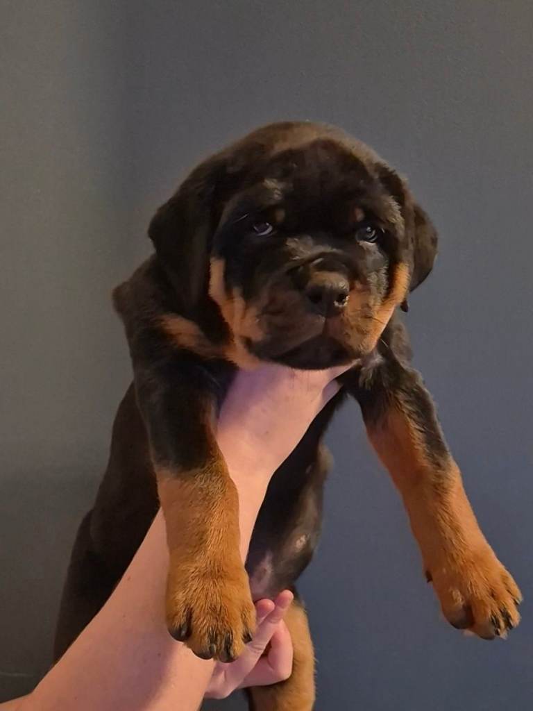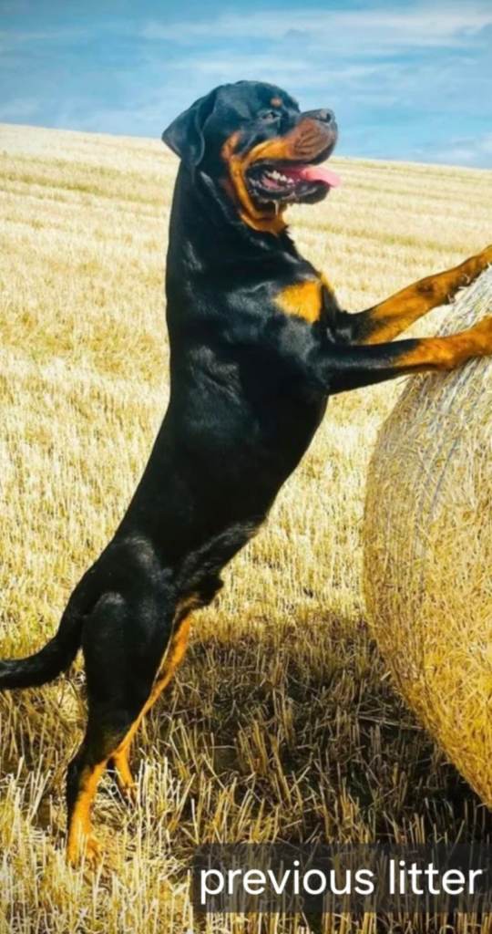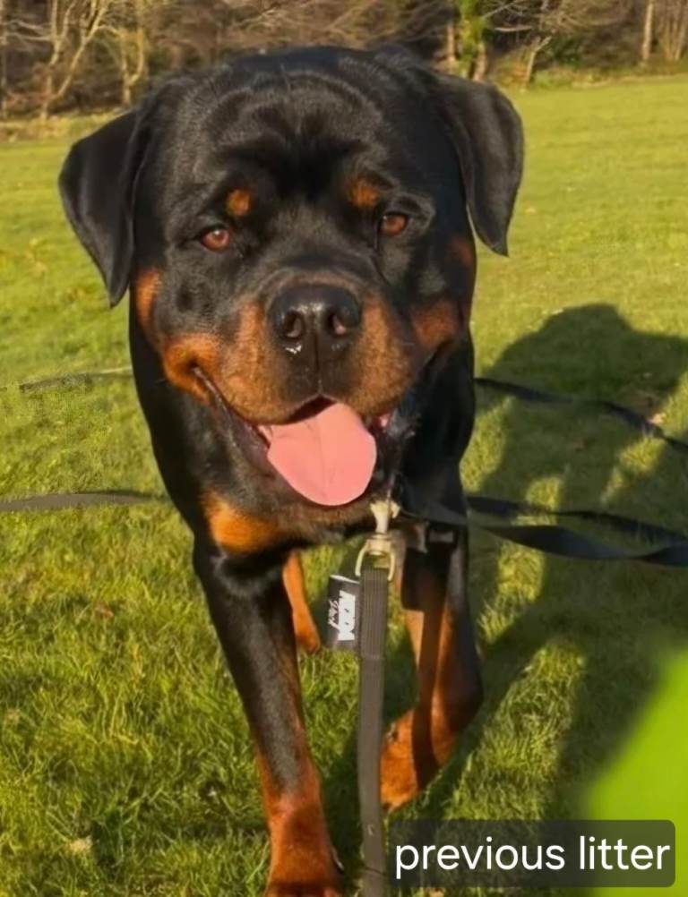 Sire to litter is KC Reg Malliouhana Vinny @vintherottie He is a striking powerful male, with excellent breed structure and traditional Rottweiler markings. Vin has a fantastic balanced temperament, confident, loyal and affectionate with people. He is a strong, well built dog, with a solid frame. Vin is known for producing healthy puppies with great temperaments, strong bone structure and beautiful markings. He is also fully health tested with fantastic results. HIPS- 0/0 ELBOWS- 0/0 JLPP- Clear LEMP- Clear NAD- Clear EXON2- Clear XLMTM- L/L- short hair BVA Eye Exam- unaffected.