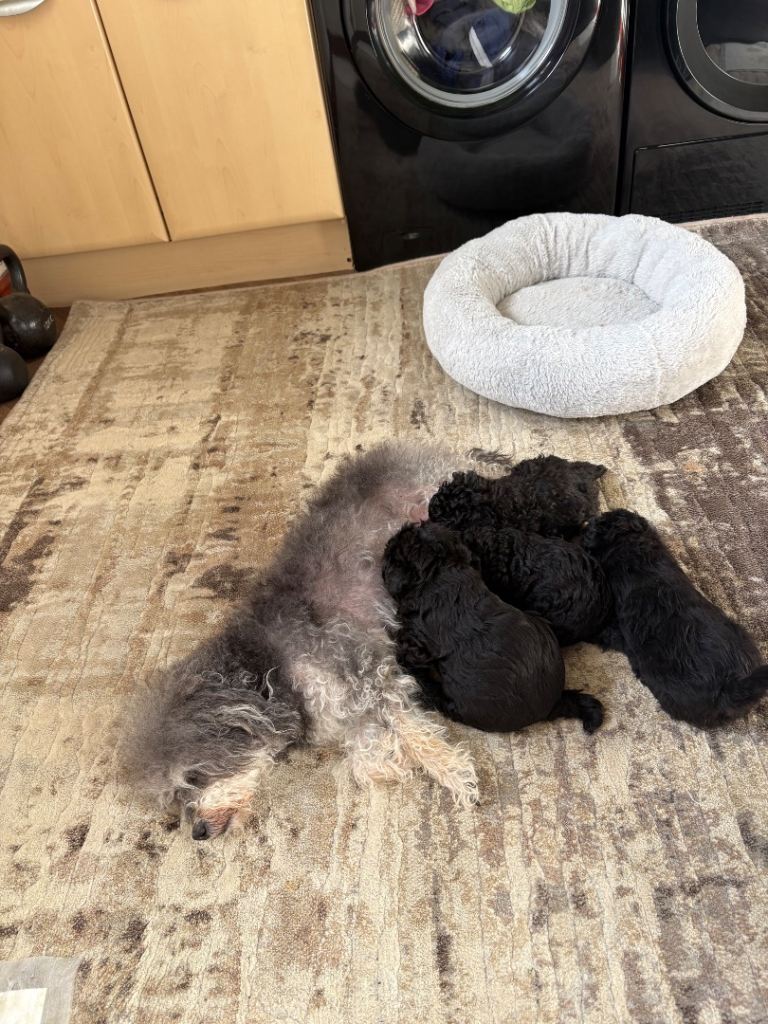 Mum is a beautiful phantom Miniature Poodle and this is her second litter. Dad is a striking silver Jackapoo with a lovely temperament. Both parents are well cared for and can be seen.