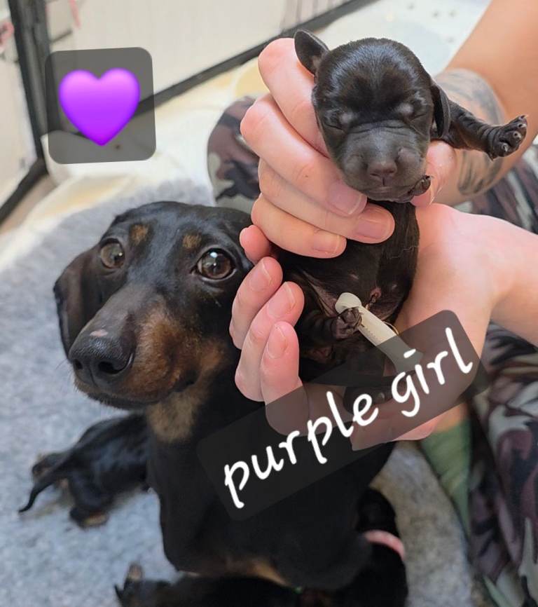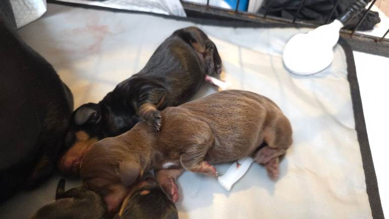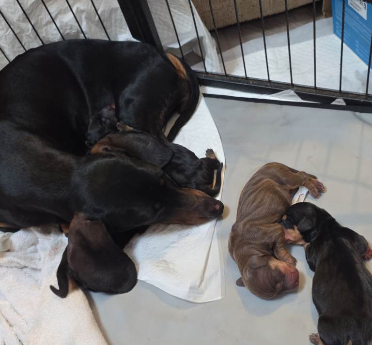 This is Bella's second litter to our male Miniature Dachshund and family pet, Scooby.