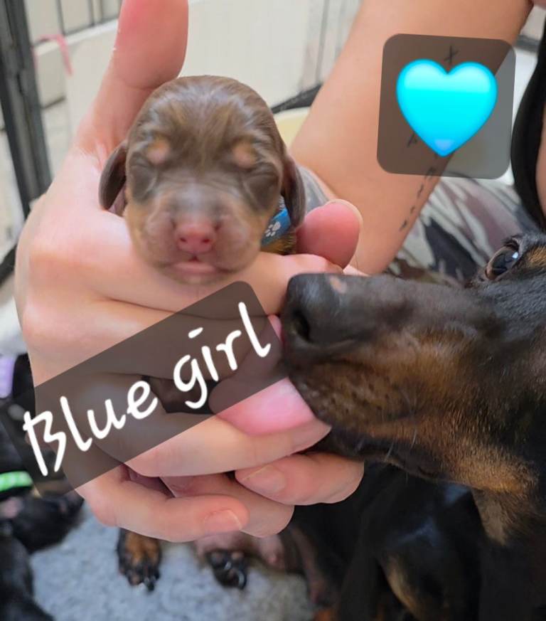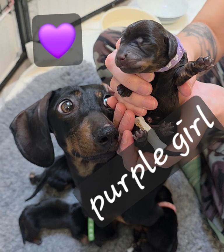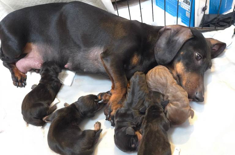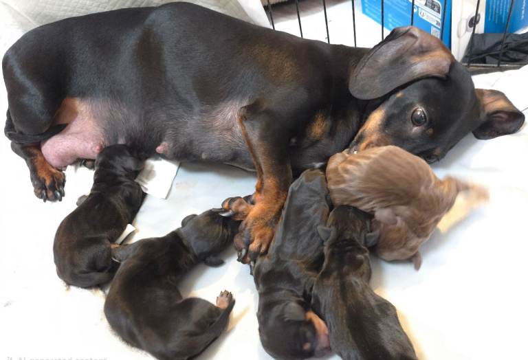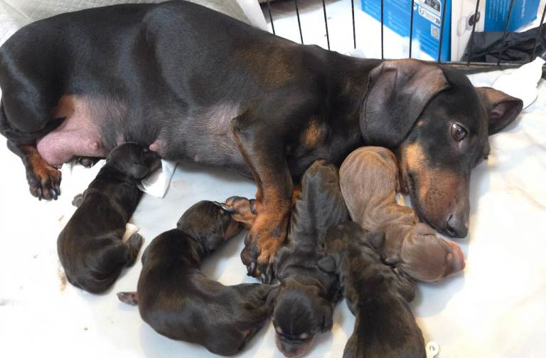Mum is a Black and Tan Miniature Dachshund.