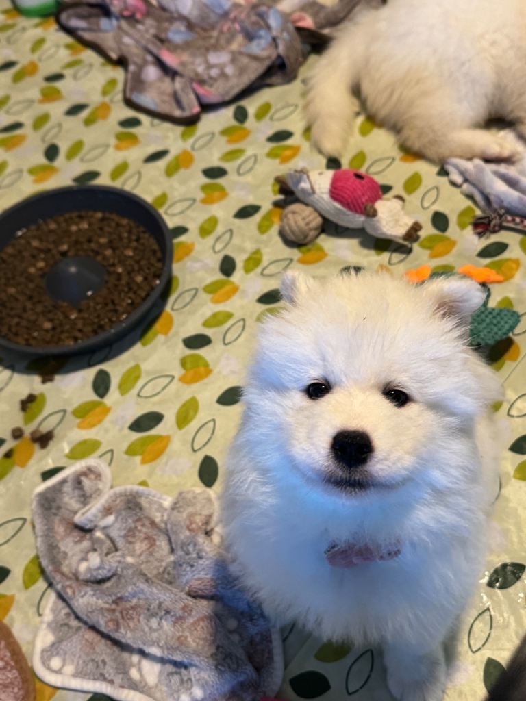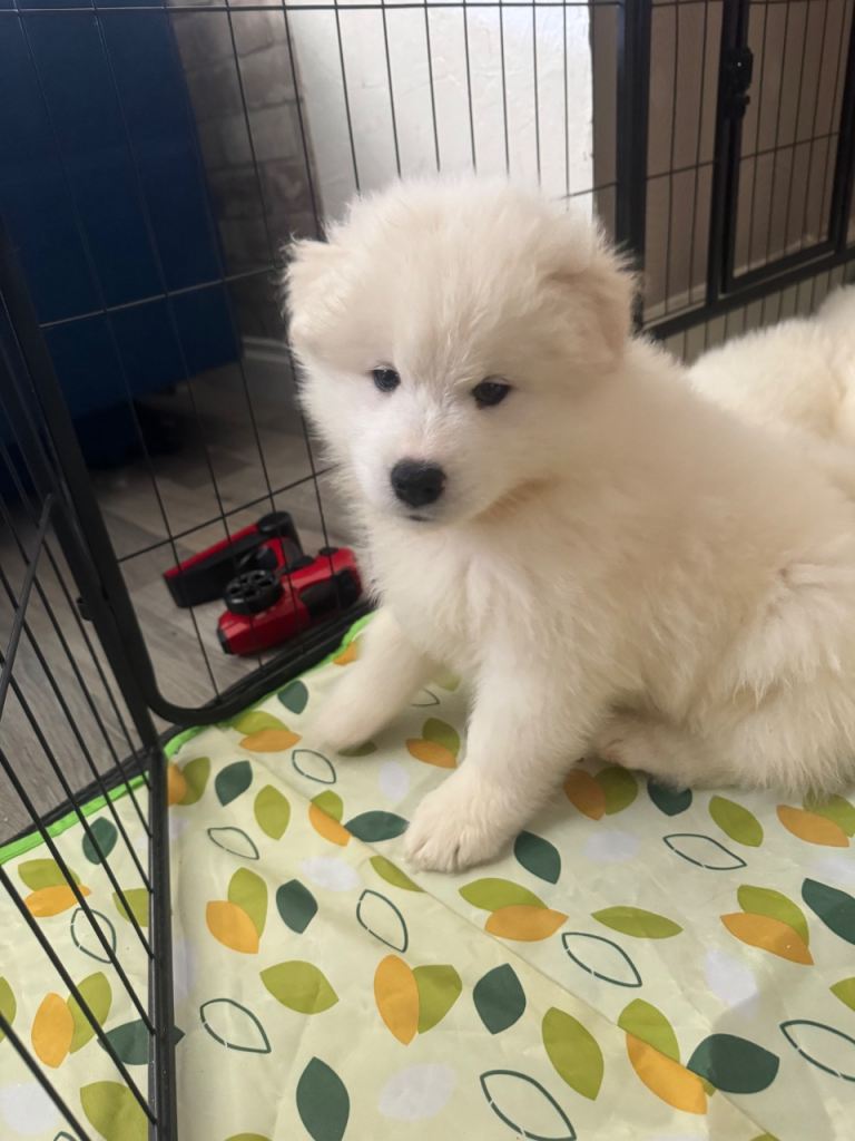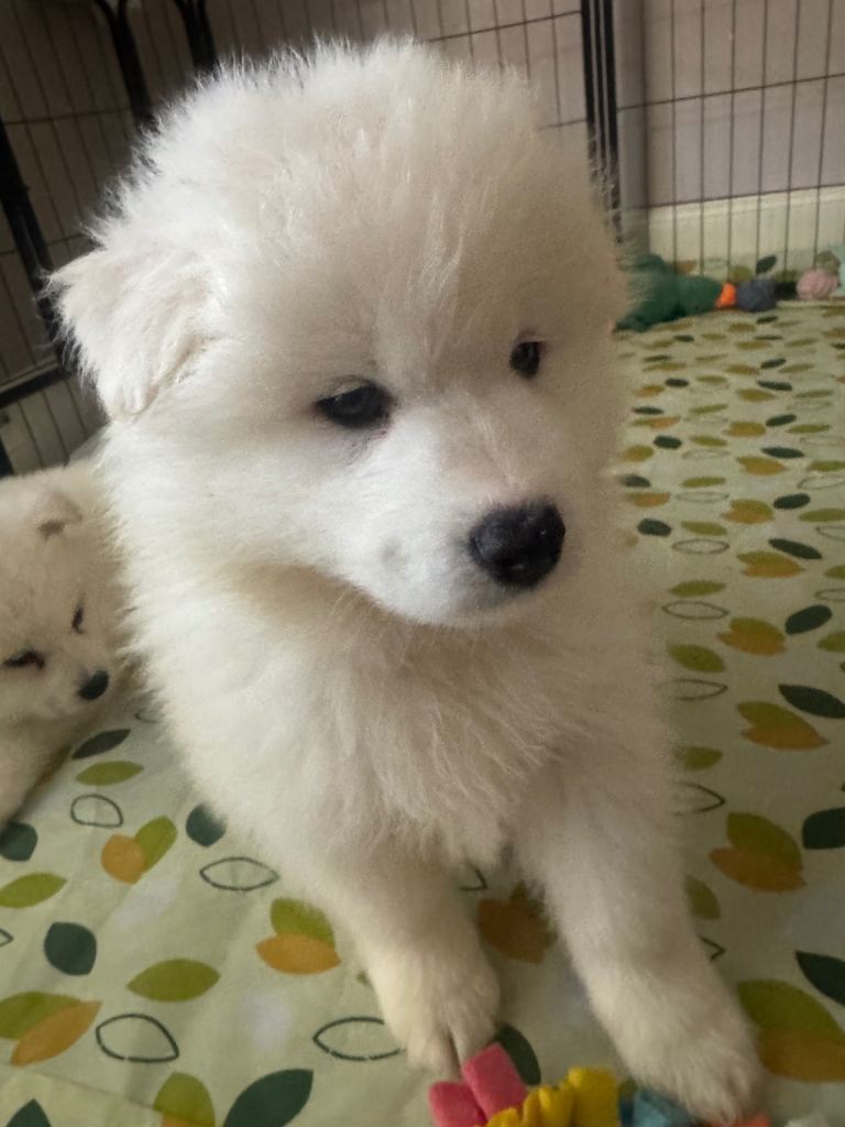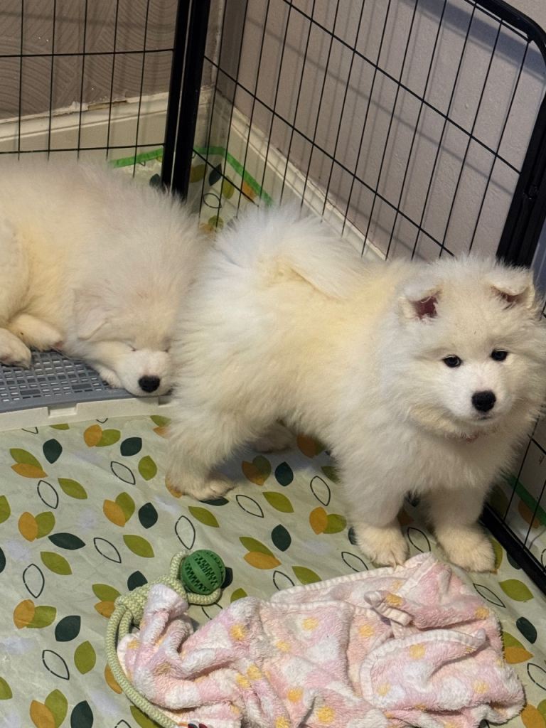Beautiful purebred Samoyed puppies born on 14 February (Valentineās Day).