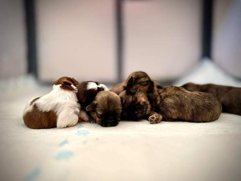 The puppies come from wonderful parents. Mum, Millie, is a beautiful, purebred 2-year-old Shih Tzu with a sweet, gentle nature and a well-groomed, healthy coat. She is a much-loved family dog and has been an amazing, caring mother. Dad is a handsome 7-year-old purebred Shih Tzu, registered with the Kennel Club, with a calm and friendly temperament.