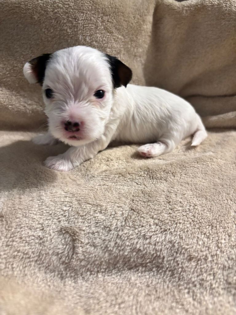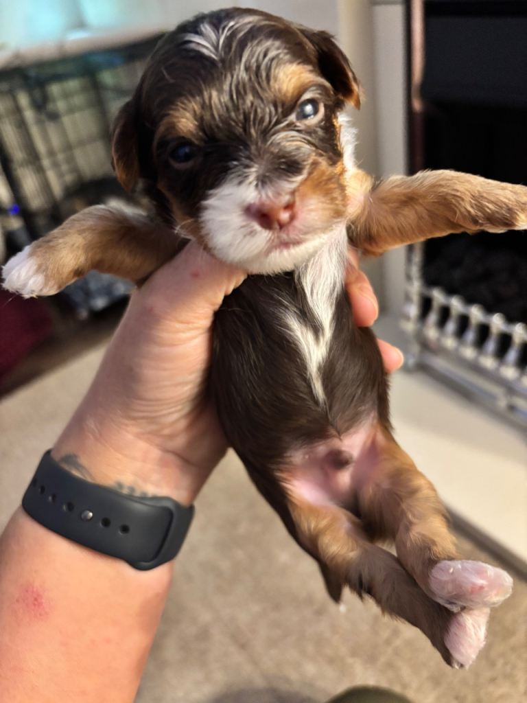 Chocolate male is a Parti Terrier