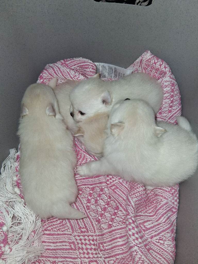 I am very proud to announce that our lovely pure white Pommerainian has delivered us for the first ever litter... 4 stunning teddy bear double coated little beauties