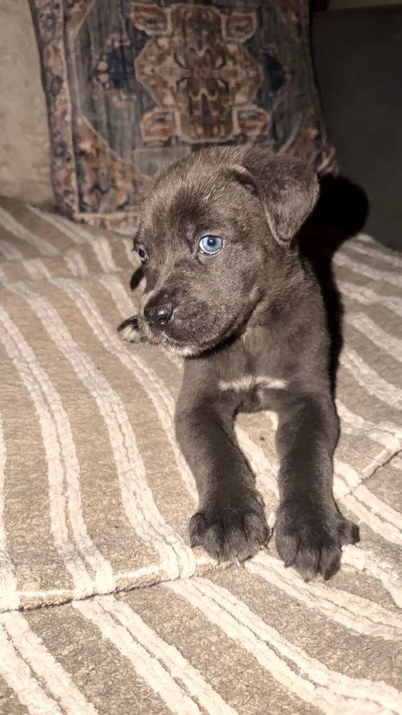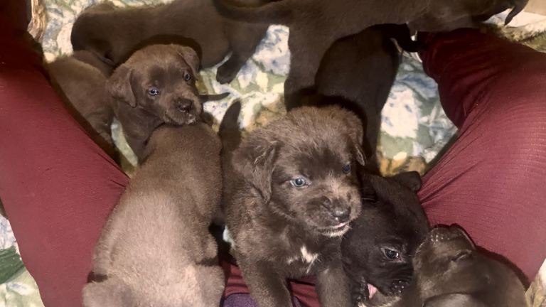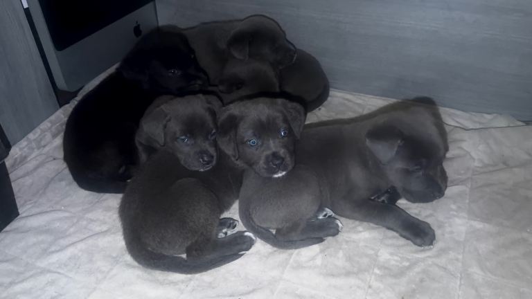 We have 5 girls and 4 boys all with their own perks. Looking for a loving home 3 fluffy gray one black they look like they have got some of there dads coat there's five with there mams coat all as cute as each other but make no mistake theses are going to be beasts