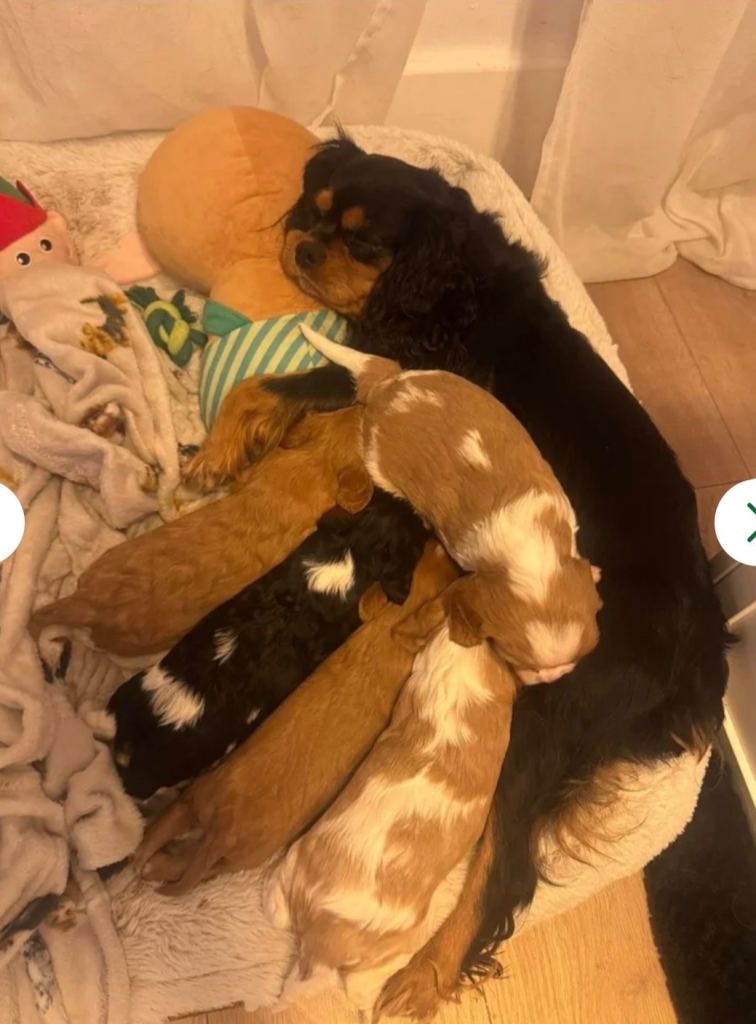 She is the best mum to these babies , she’s super friendly with dogs children and humans and is our adored pet . She is the correct size of a cavalier and the most perfect example of the breed and size .