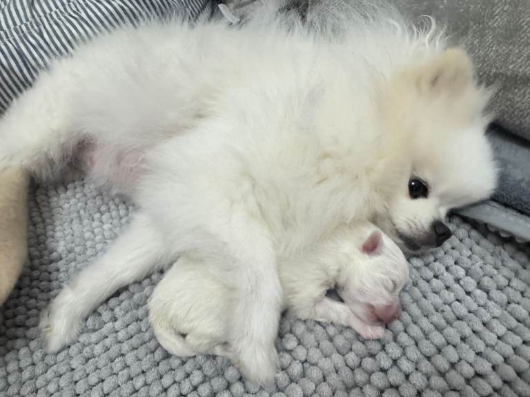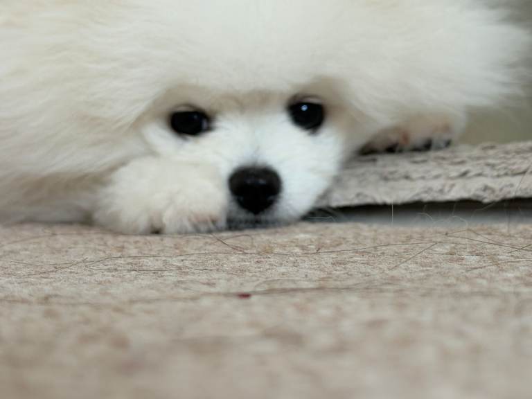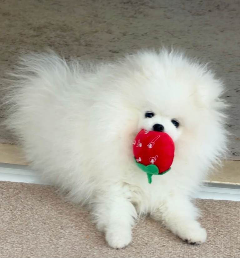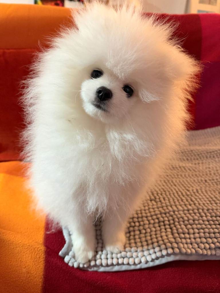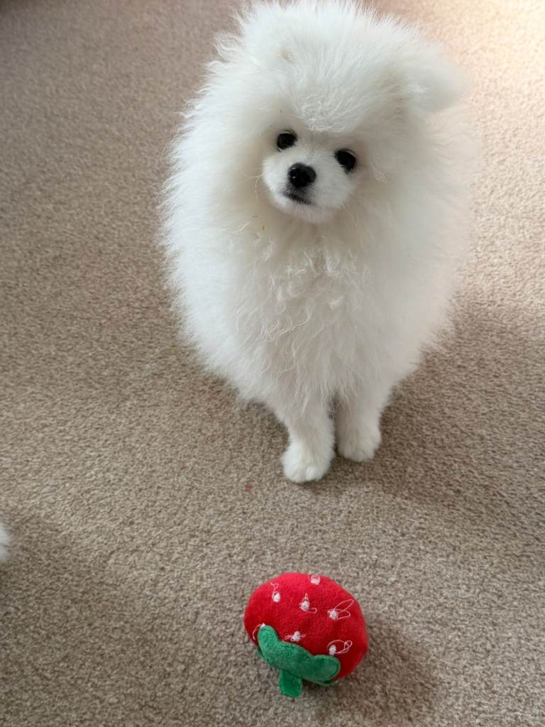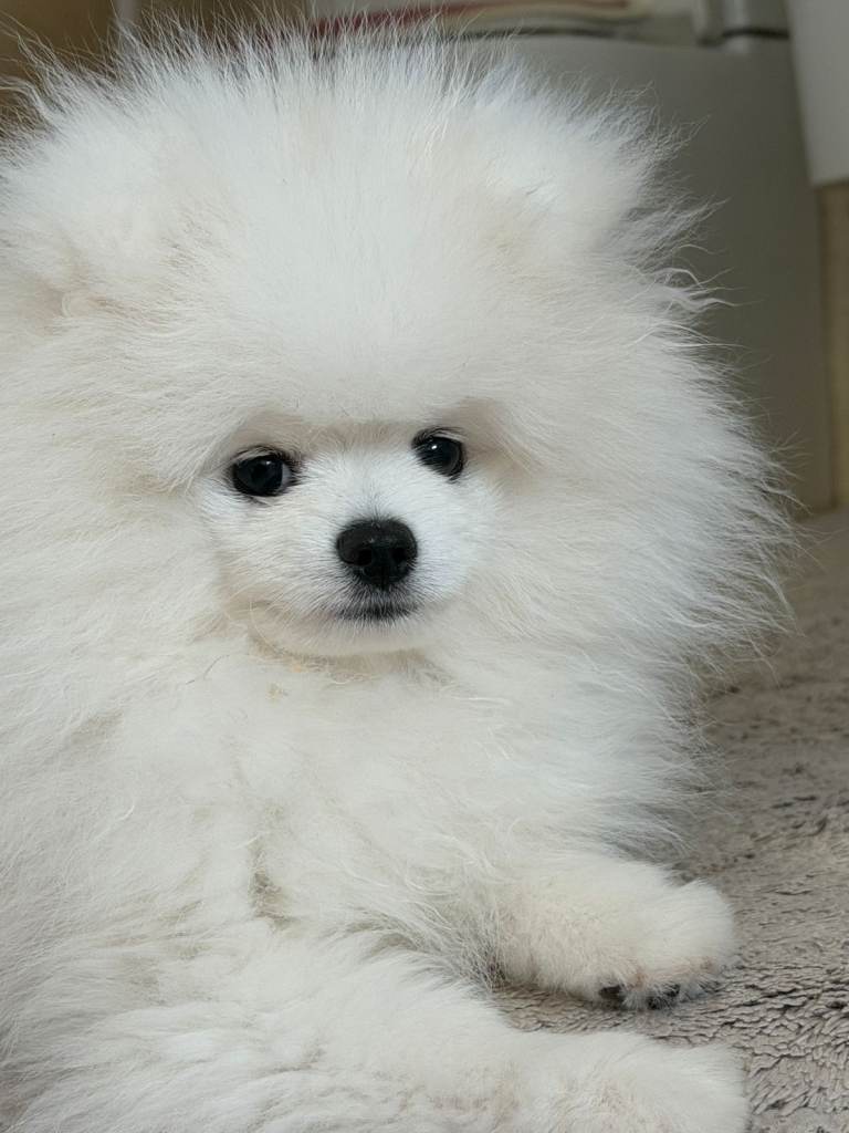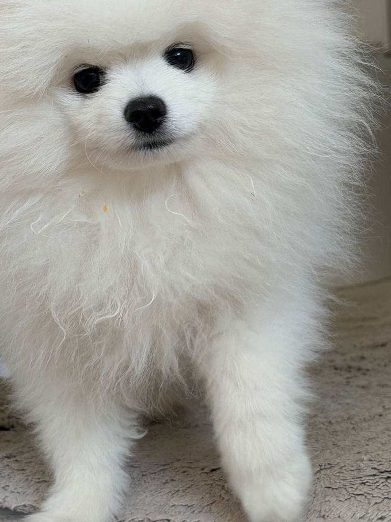 From a KC litter of purebred white Pom parents. This stunning, adorable pure-breed white baby boy has a happy, lively character from a very loving family environment. He is our only child in the family, so he gets all the attention, cuddles, kisses and pampering. Please, only for non-smoking lovers of a clean home, and children must be over 6 years old. Ideally, could work from home from time to time to spend more time with him.