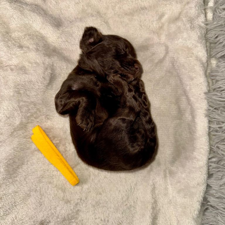 Puppy 3 - Yellow Girl 💛 Twin - Chocolate with slight White Chest & cute as heck White Goatee!