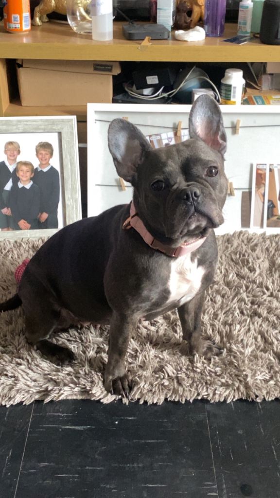 1 male left out litter has tail like mum which makes him very unique mum and dad are full French bulldogs and family pets mum is blue brindle with white chest and so is dad, very friendly and loving has been flead wormed and micro chipped can be seen with mum as dad lives with my mum. Ready now x