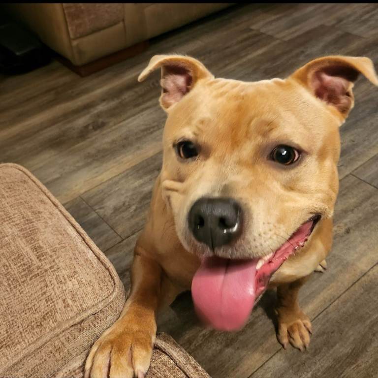 This is bear, hes a 1 year old kc registered Staffordshire Bull terrier needing his forever home through no fault of his own. Needs a home with no other dogs but is great with kids. Asking £100 to ensure good home, comes with crate, lead, harness and bowls.