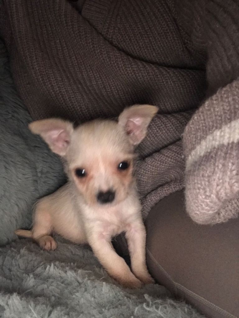 She is a a mixed breed - her mum is a Chihuahua mixed with a little Jack Russell and her dad is a Yorkshire terrier. She is 10 weeks old and needs vaccinating