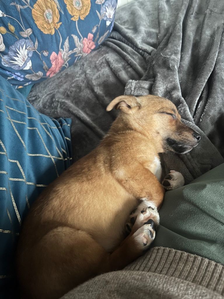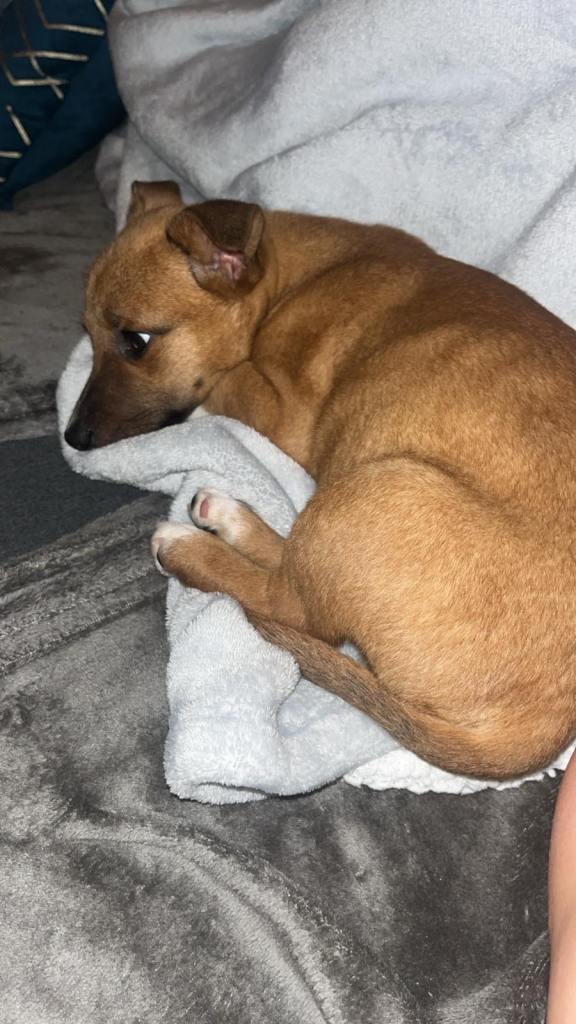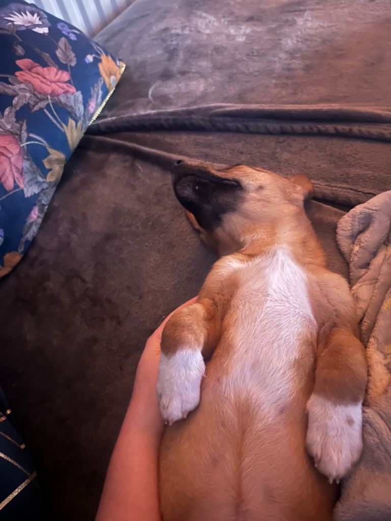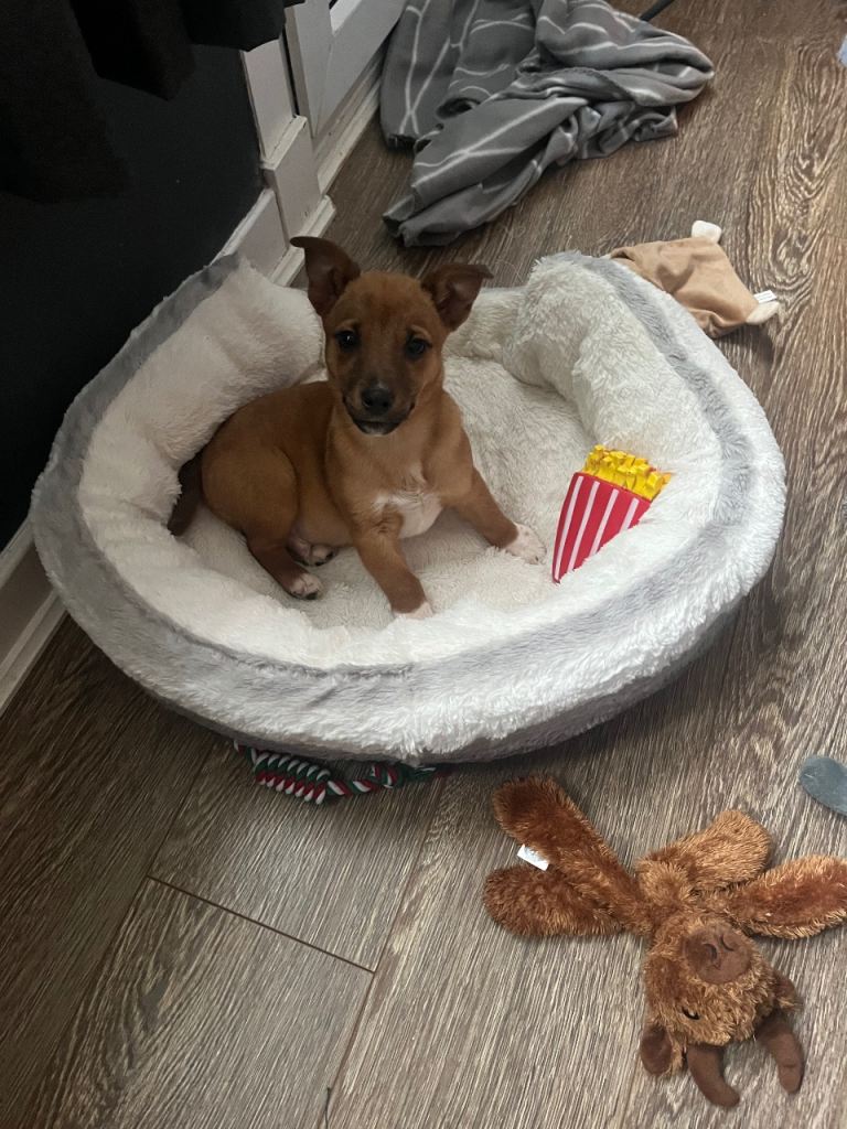 He is 12 weeks old and is such a lovely pup. He’s super intelligent and picks up commands very quickly. He’s being potty trained outside which he’s learning very well, though we do use pads just for any accidents.