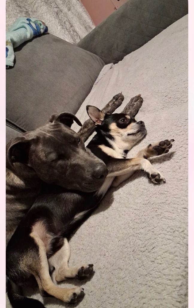 She is loving, she gets along with dogs! I have a small dog at home and she gets on with him, plays with him but sometimes goes to far as she thinks she’s small aha.