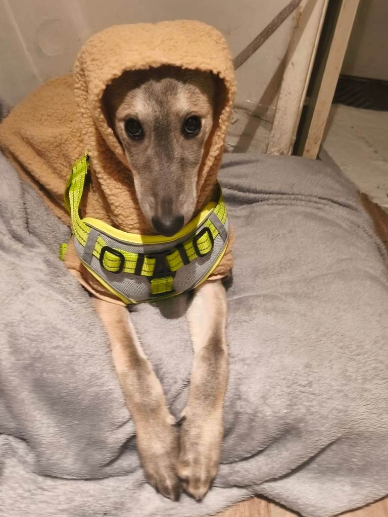 Comes with collar and lead and bedding and dog food and bowls and toys