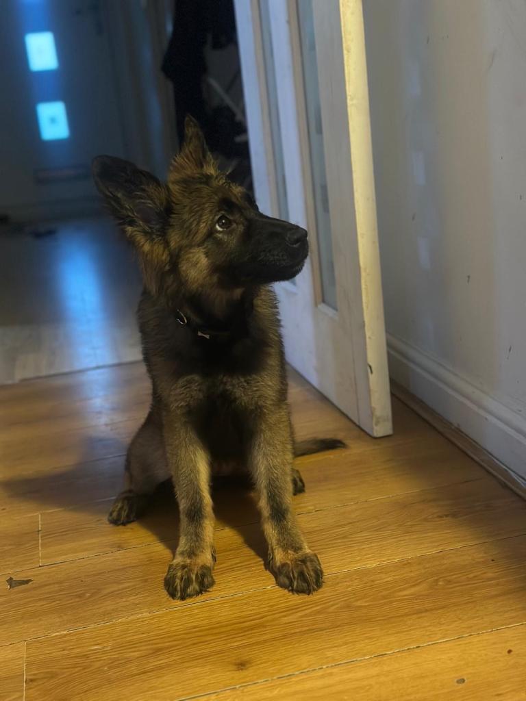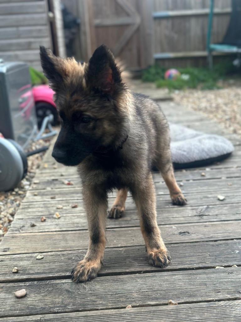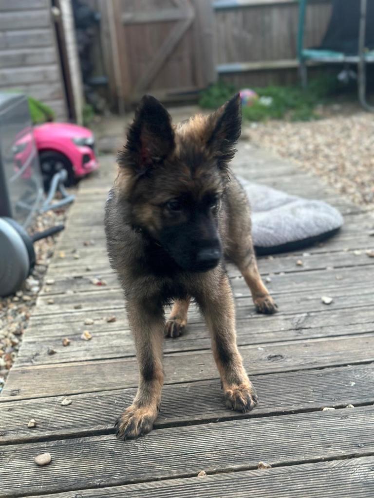 We have a beautiful girl nearly 4 months old German Shepherd, she’s very intelligent, very friendly with people, been brought up around my children, good with other dogs, confident and well socialised, used to walks and being handled, she has a lovely temperament, vaccination up to date.
