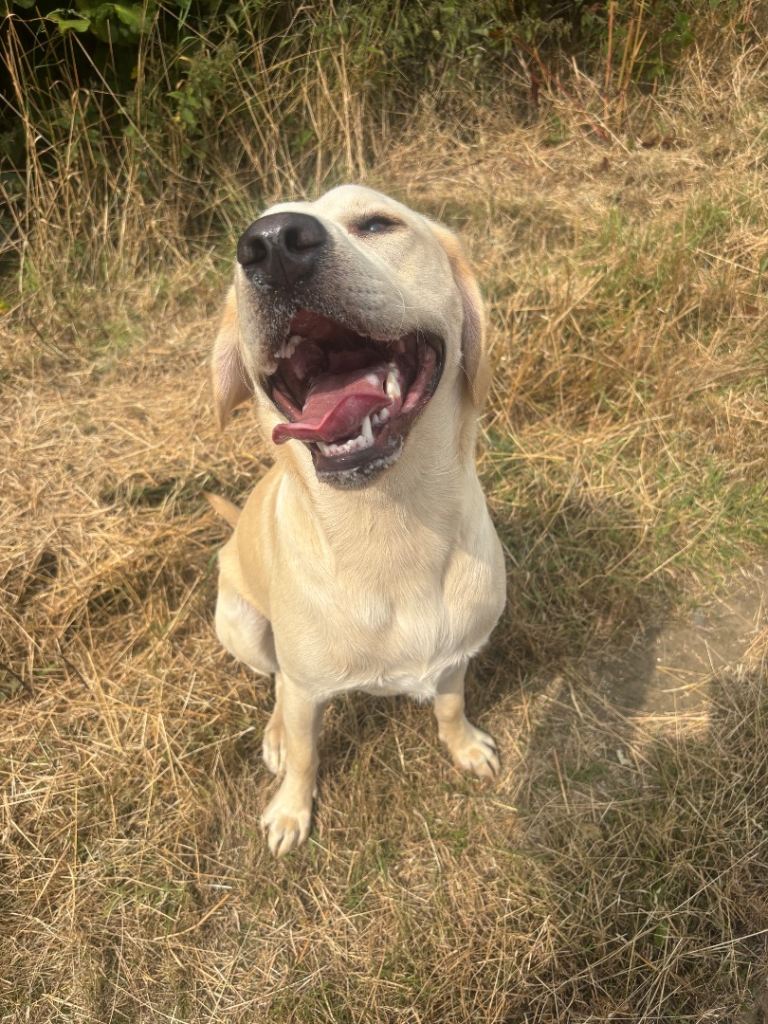 Reggie is a 17 month old lab he is a good dog and very sociable and amazing with kids and cats as he has grew up with both.