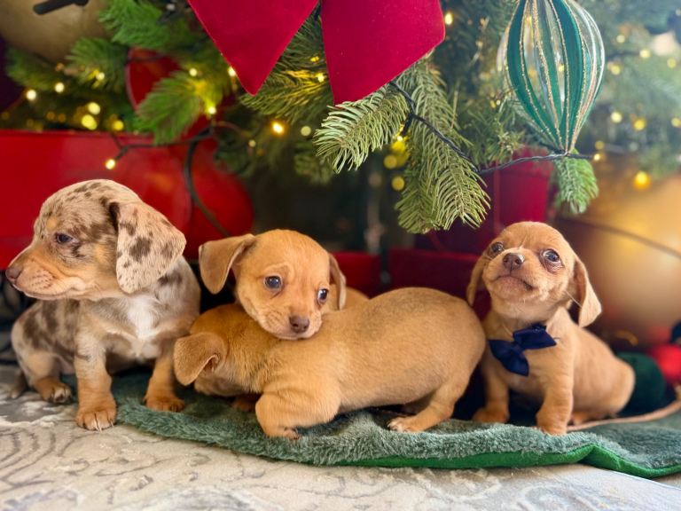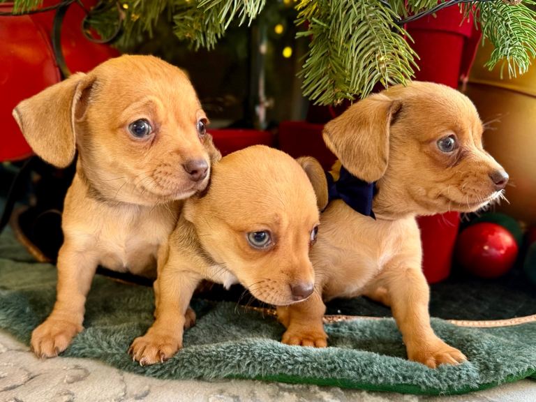 2 boys left dapple Chiweenie puppies
