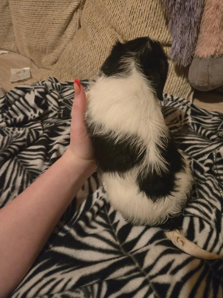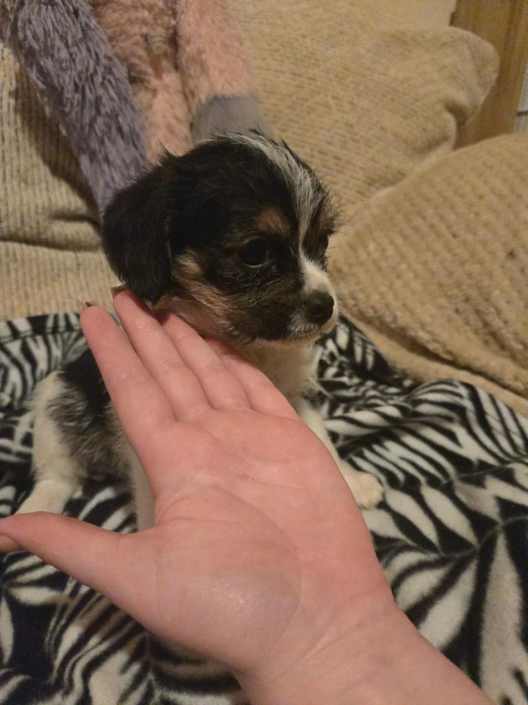 I have for sale and ready now for there new loving forever homes 2 pups left now black white boy and a fawn girl . Lovely happy healthy playful pups . They are flea treated wormed . And have there micro chip done . Dad is cavachon , mum is a jug Puppy’s will need there injections , they will come with puppy pads enough food for couple days get started in there new home : they eat wet and dry food .