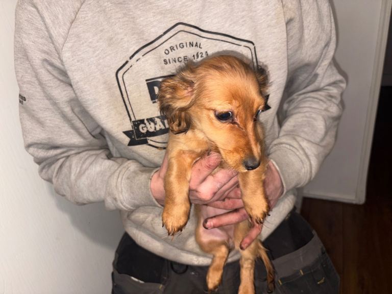 LONG HAIRS MINI DACHSHUND FOR SALE CREAM COLOUR £800 born 22nd October mum and dad are KC REGISTERED