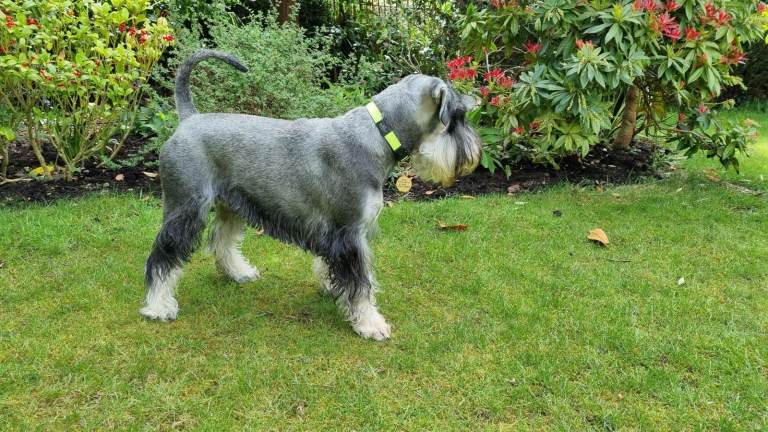 Hello. We are looking for a very special home for our 2.5 year-old castrated Standard Schnauzer. He is a really good dog in so many ways: he is loving with us, intelligent, enjoys agility in the garden and is great at close heelwork, doing tricks etc. (see the videos of him doing agility in the garden and working on obedience moves in the hall). He’s also a good watchdog as he sounds the alarm when anyone approaches the house – though that can be annoying. At this stage, I expect you are asking what the problem is. Unfortunately, he does not get on with our 7-year-old cockapoo bitch and given the size difference we cannot risk any confrontation meaning that we live day to day with them in separate areas of the house, sharing our time with each of them. We are now at the stage of thinking that this isn’t sustainable. If that were the only issue, I’m sure re-homing him would be easy, but it isn’t just our other dog that he doesn’t get on with. He is also unpredictable with both strange dogs and people. He has never bitten anybody, but we take no risks and muzzle him when he is in public. When we have visitors, we put him in his crate only letting him out when he is quiet and settled – but it can still be very off-putting as he will not let strangers stroke him. We’ve soldiered on with him because we love and care about him, but we have to admit that he really isn't the right dog for our family. I think he would really suit someone who has time for him, has no other dog, and wants a constant companion to be with them most of the time. He is crate trained, muzzle trained (though he doesn’t like it), fully vaccinated and flea treated. He’s a complicated dog and not friendly to everyone. It'll take him some time to accept you and no doubt he'll be a nightmare until he settles but he is such a special dog that if you have the time, understanding and patience, he will be a friend for life.