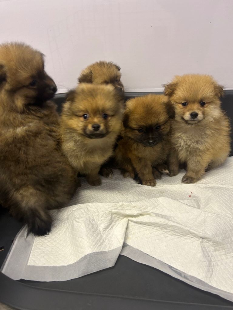 Here I’ve got 3 beautiful Pomeranian girls and 2 Pomeranian boys available looking for a forever home . They are all well trained puppies really caring and loving . Really love to play with kids and other animals aswell .