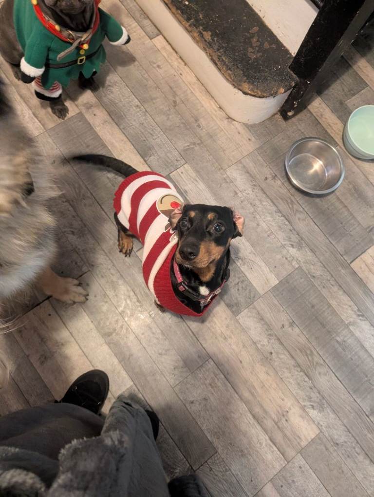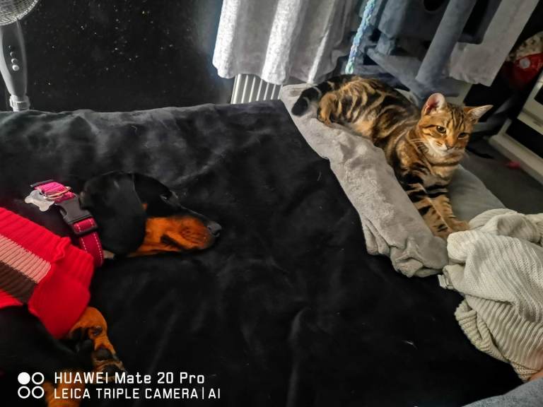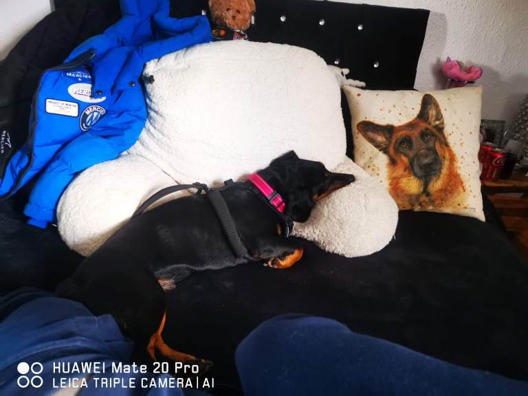 She is very loving brilliant with kids and cats and other male dogs just not female she is an original dachshund big for her breed not been spayed having to re-home as it's causing a drift between both my male dogs she likes to lick alot. And likes company doesn't like being on her own. She has her own crate that she only goes in when popping out. She needs a loving family who will give her lots of time and attention