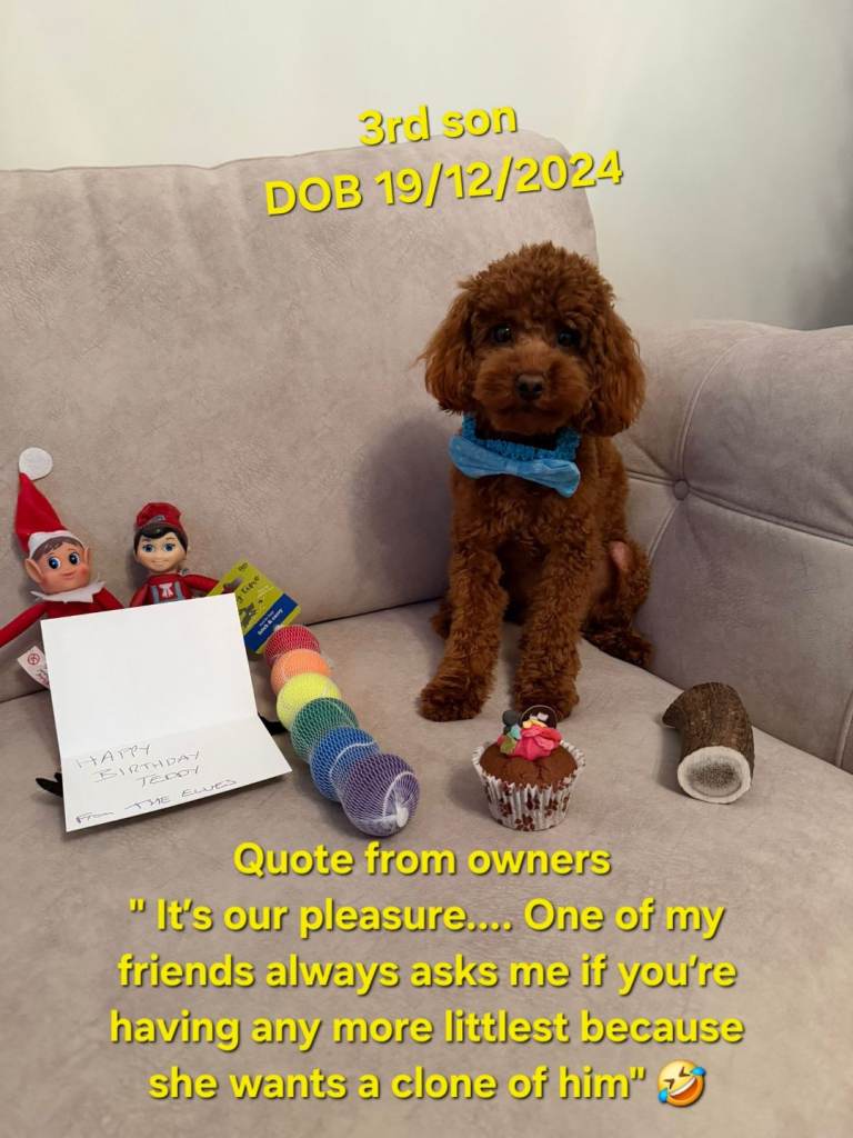 🐶 Dad is a Korean Toy Poodle from Korea directly. DNA paper upon request. He's extremely loving, and kind and weighing 2kg. A true Teddy bear size.