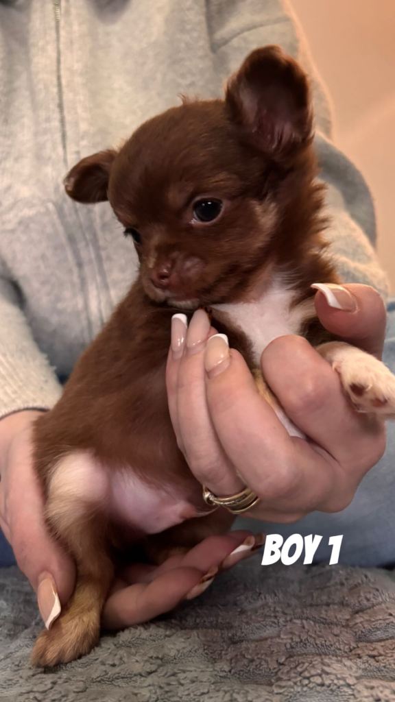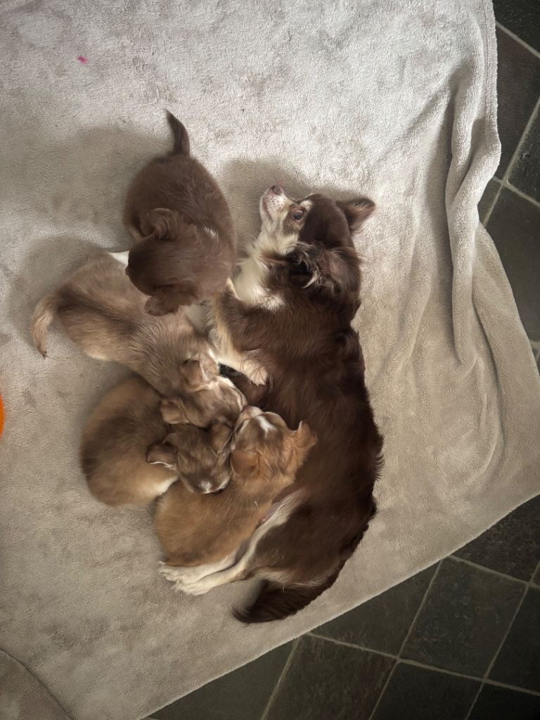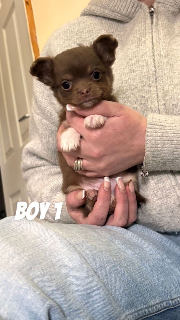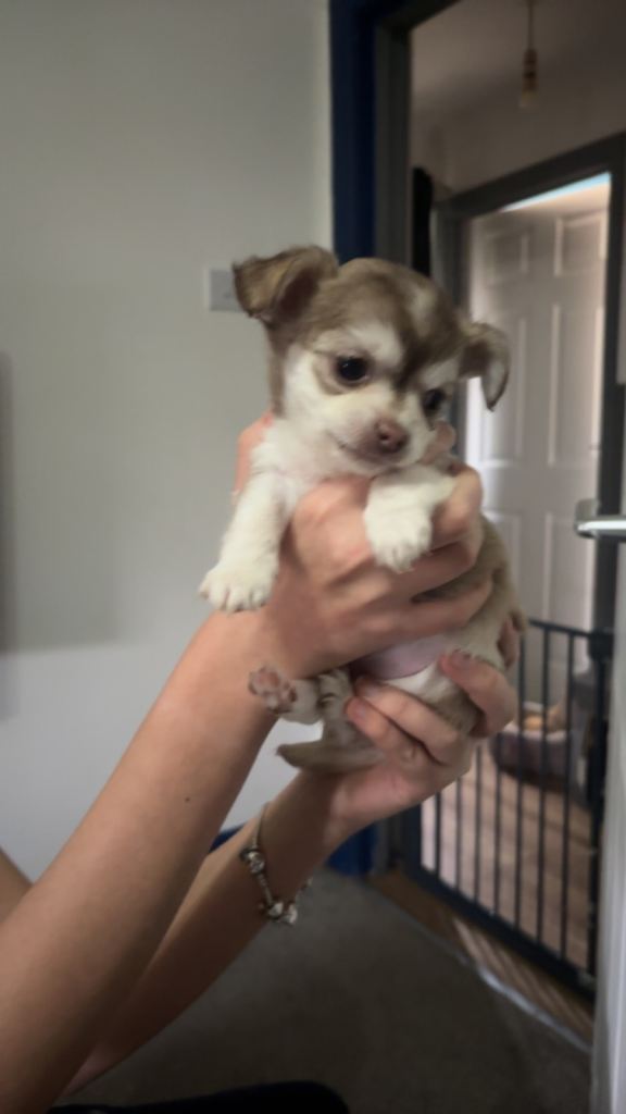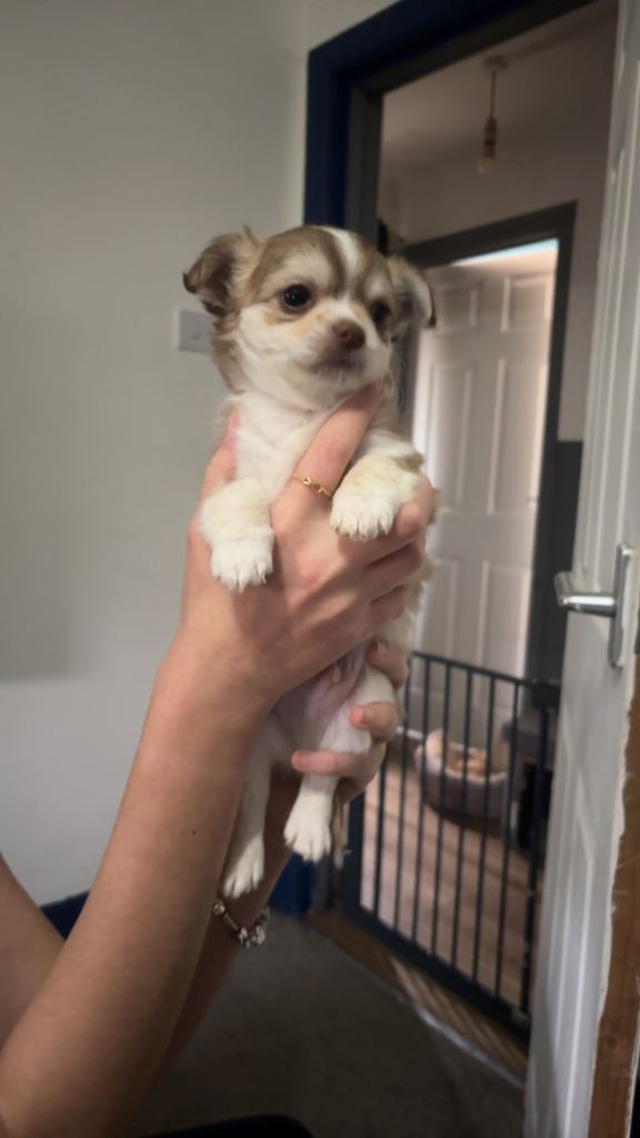 2 female and 2 male chihuahua puppies looking for there forever homes . Mum and dad are our family pets so can be seen on viewing. Have been brought up around other dogs , cats and children . All have wonderful characters love to play and have cuddles . All eating and drinking well starting to use puppy mats .