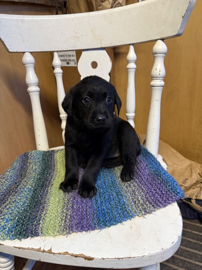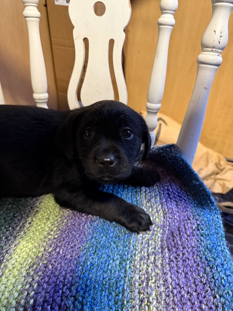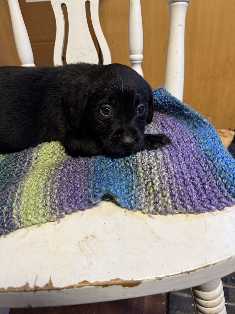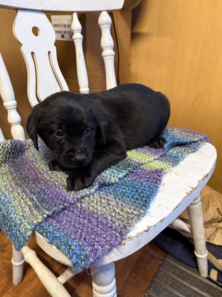 We have four adorable black Labrador puppies looking for their forever homes! There are two girls and two boys, all in excellent health. They've been flead and wormed up to date, and they are microchipped. These puppies have been brought up in a family home with young children