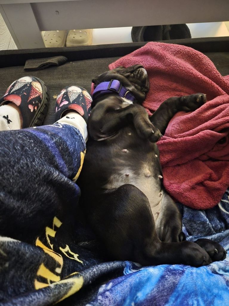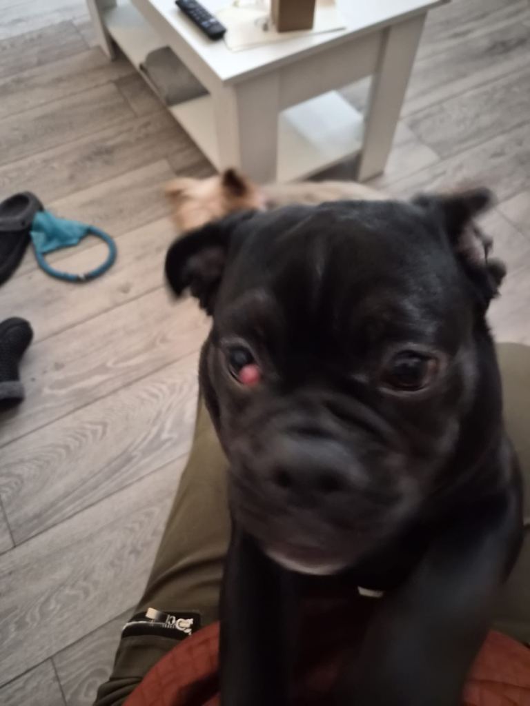 Posting for under a month4 month old Female pug/bull dog