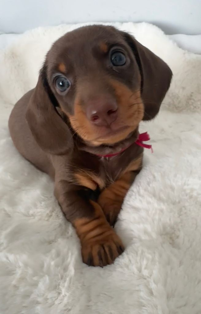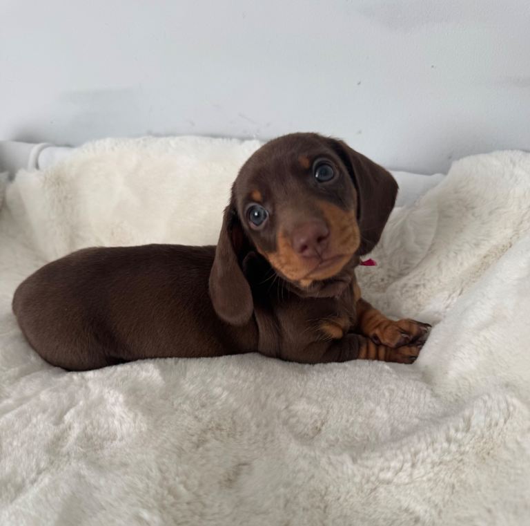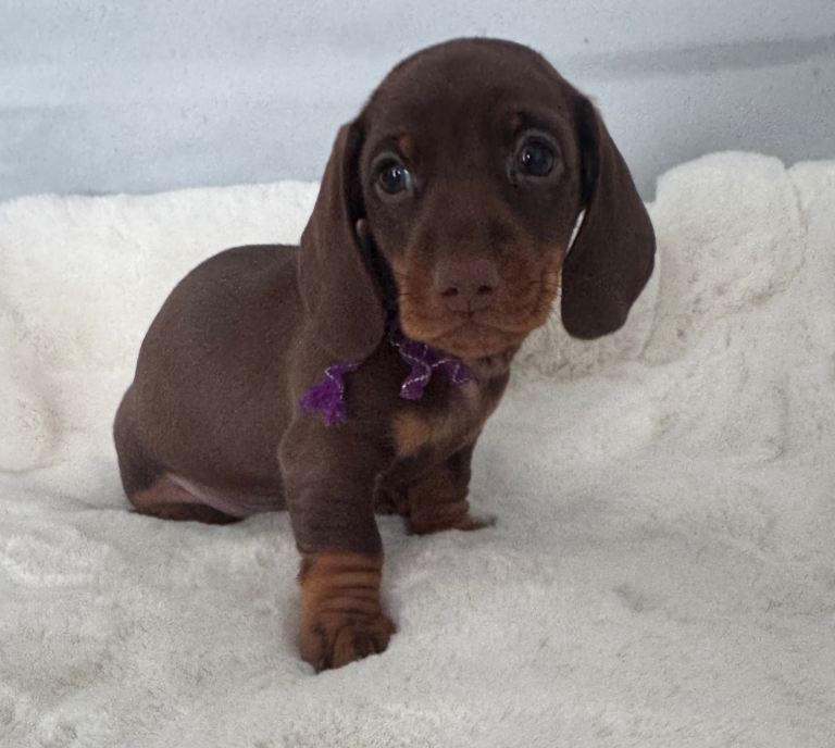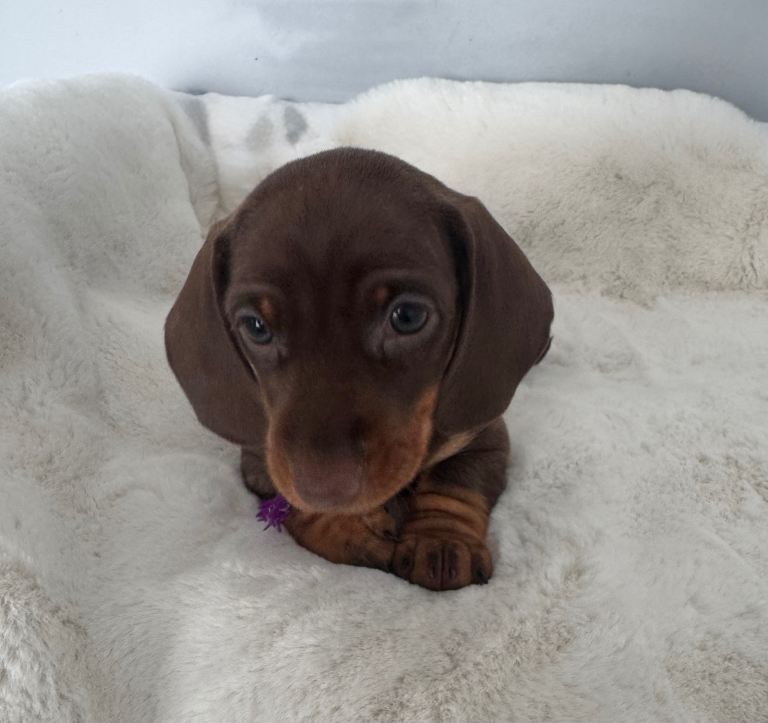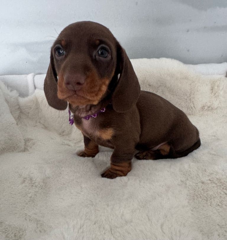 4 beautiful chocolate & tan miniature dachshund puppies looking for there forever homes.