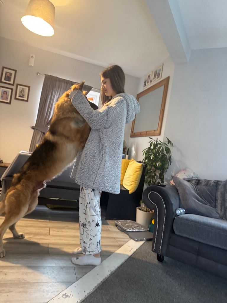 Max is so loveable and soppy attitude towards people, he does have the loud bark when someone at door , walks he will bark at dogs , I have had a trainer introduced him to another dog he was absolutely fine after a few barks .. long haired , knows commands , absolutely loves balls and squeaky toys