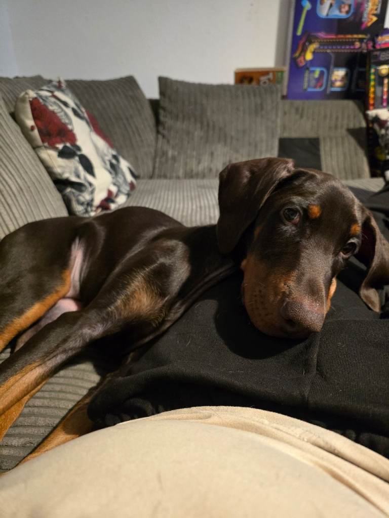 We have a 5 Month old female dobermann for sale, both her parents are dobermanns but unfortunately we dont have any paperwork to show her as a pedigree, we havent had her long but have realised she is too much to handle along with 2 kids (3 & 1) in a small flat.