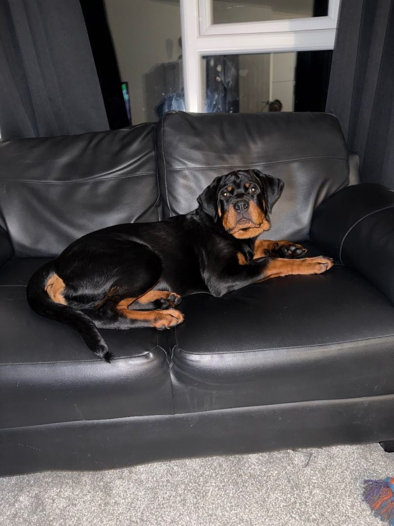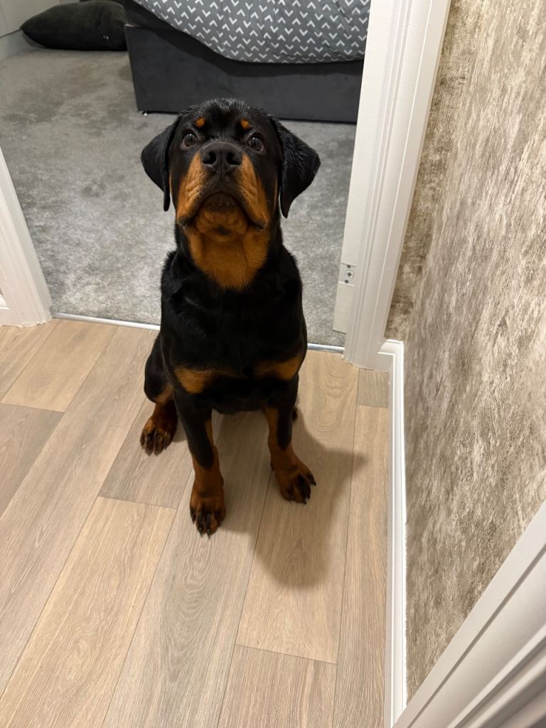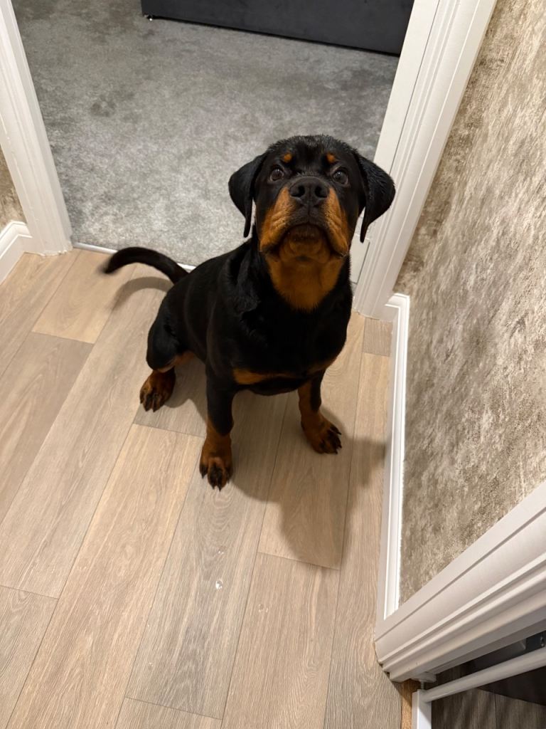 He’s back up due to a time waster! If you’re not interested or going to mess us around don’t message or ring me! He’s brilliant with people and dogs just want to play can get a bit over excited This is a very very sad sale we are having to rehome our 5 month old Rottweiler called Chico he was born 22/july/2025 due to he gets protected over his treats and we have a 9 month old son and one on the way he does get on really well with our 9 month old son he is very loving and protective over his property my partner is also pregnant so it can be very hectic and we won’t have as much time for him sadly we really don't want to get rid of him but circumstances has changed it kills me making this advert really does so no hate please he won't be going to anybody must know and have experience with this breed please as I don't want him going to the wrong person he comes with everything we got for him and he doesn't come with papers but he is pure bred Rottweiler message me with any questions thank you I am open to offers but nothing stupid he will come with a lot of stuff does need a bit more training NO TIME WASTERS
