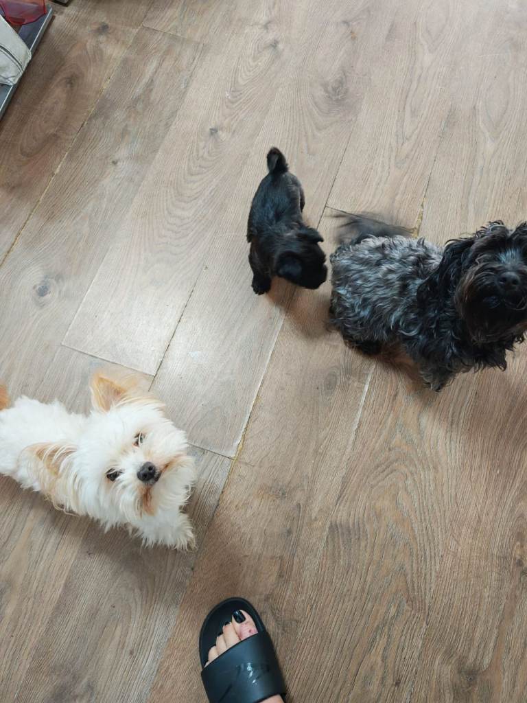Vet checked and chipped. All of the puppies are very healthy and they are eating dry food they are very playful and have good personality they are ready to go. The Mum is Yorkshire terrier, and the father is mix of Yorkshire and jack Russell we own the mum and dad.