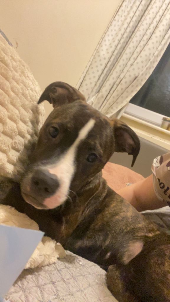 Bell, she’s very happy and healthy, cuddly And friendly. And loves attention like all the time. And Zeus is also cuddly and friendly but can be jealous around other dogs. They’re from a litter of 10 and love to play, we’re looking for a good family for them as we’re moving house and can’t keep them. They are 7 months old and still need there injections.