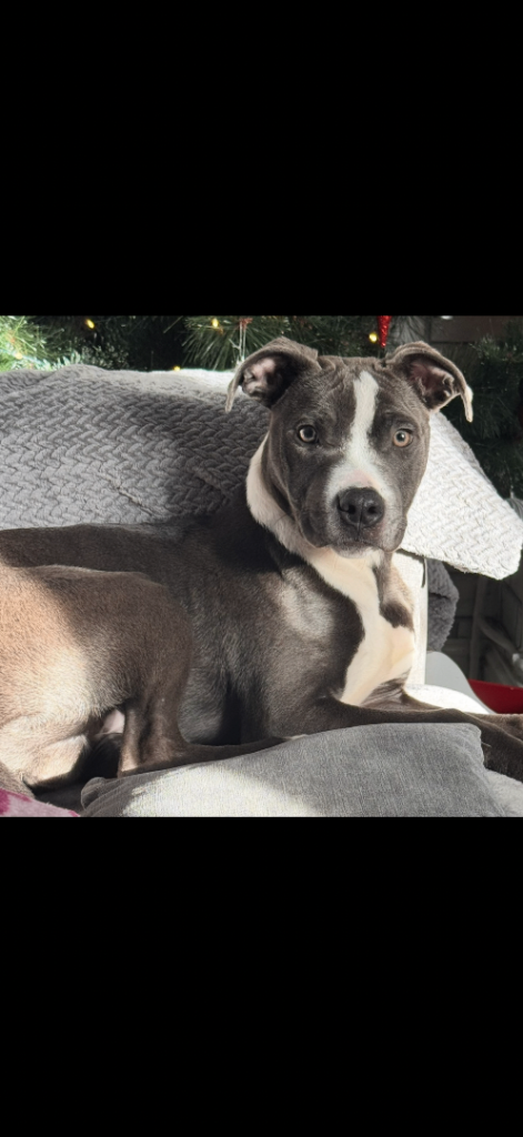 We have our staffy cross here Rockie, he’s 9 months old. He’s a Beautiful boy, we have explored every option before rehoming him, but sadly we have not other choice as he’s proving to much for our older staffy. He’s brilliant with children as I have 4 children 10 and under. We just want him go to a loving home like he he is here❤️