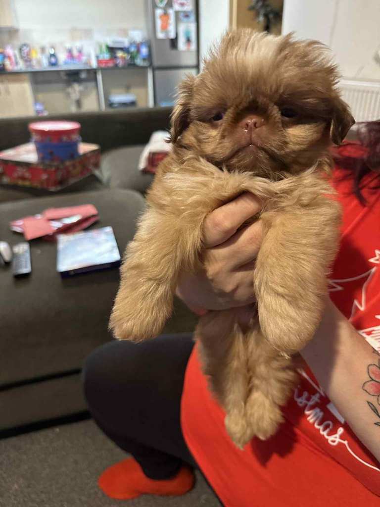 Hi for sale is the most beautiful fluffiest little teddy bear imperial shih tzu he is a amazing little pup he has been wormed and flea treated up to date and he is microchipped and is now due is vaccinations he is so cute and very small as he is an imperial shih tzu he is puppy pad trained and is learning really fast through no fault of his own we have to find him his very loving forever home asap as my daughter was rushed into hospital today she had an epeleptic fit and we nearly lost her so as you can imagine i am in such a state worried sick about her so sadly we wont have the time now to look after this little beauty as we have to put our time now taking care of our daughter he is 10 weeks old and loves children of all ages he loves my 9 year old grandson he loves to play and fall asleep on your lap cwtched up he will come with all his things like his crate, his blanket, bag of food, food bowls, toys and puppy pads please contact me at anytime if would love to give this darling little boy a loving home he is a £1000 sorry no offers we have met mum and she is a beautiful imperial small cream coloured sweetheart and he is going to be exactly like his mum thank you